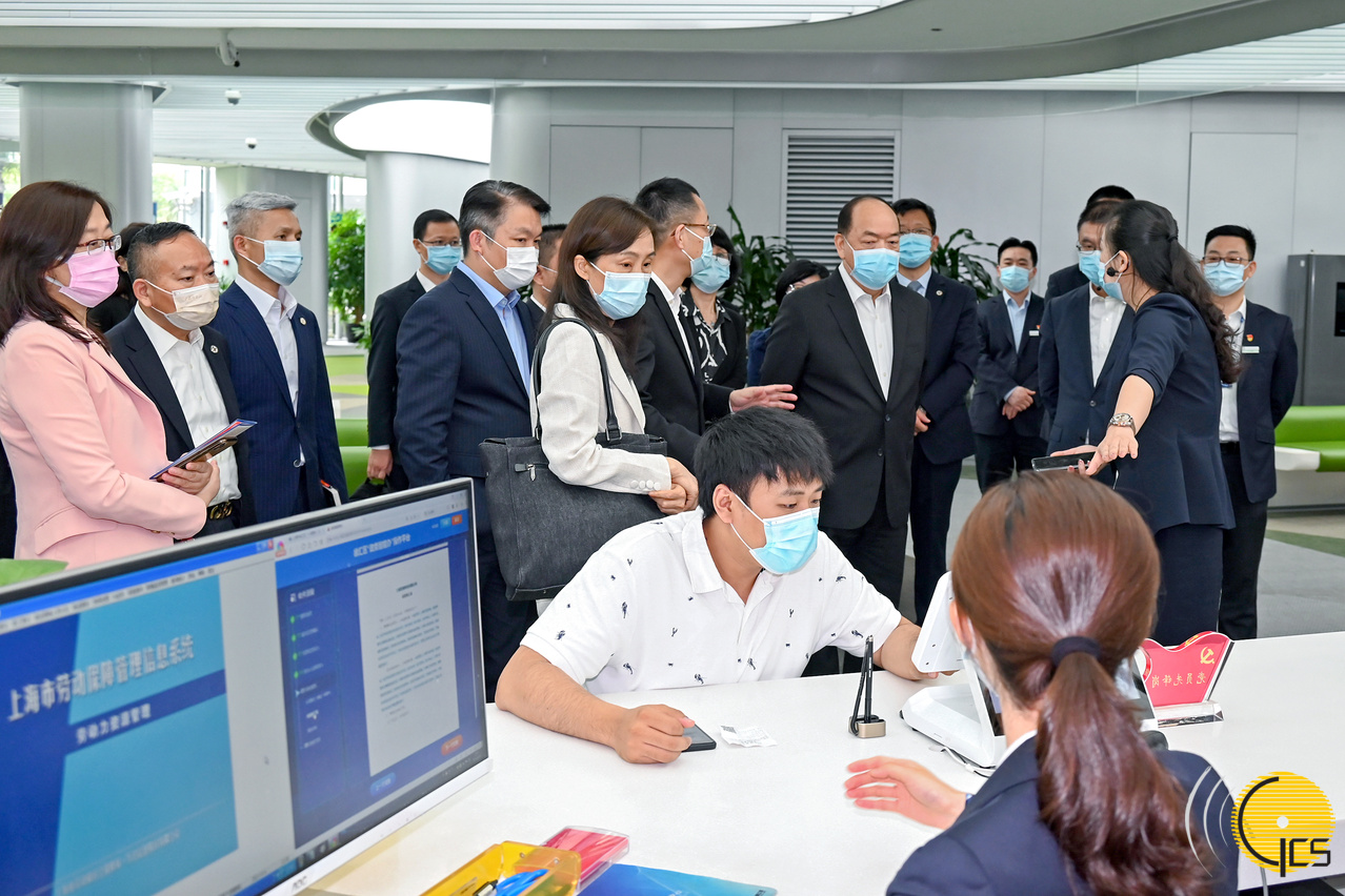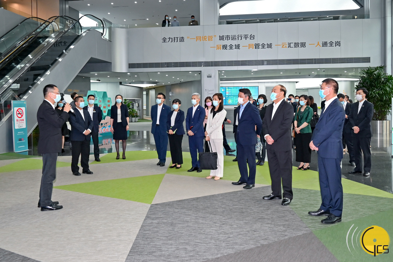 行政长官贺一诚前往上海市徐汇区行政服务中心,考察当地电子政务及智慧城市管理的运作情况。