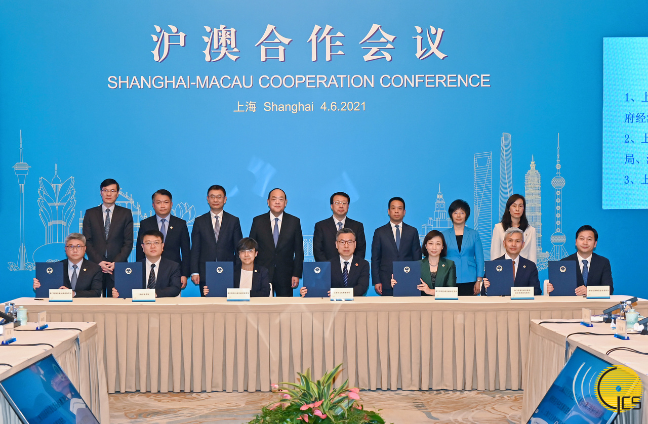 行政长官贺一诚、上海市市长龚正等见证沪澳不同专业领域合作协议书的签约仪式