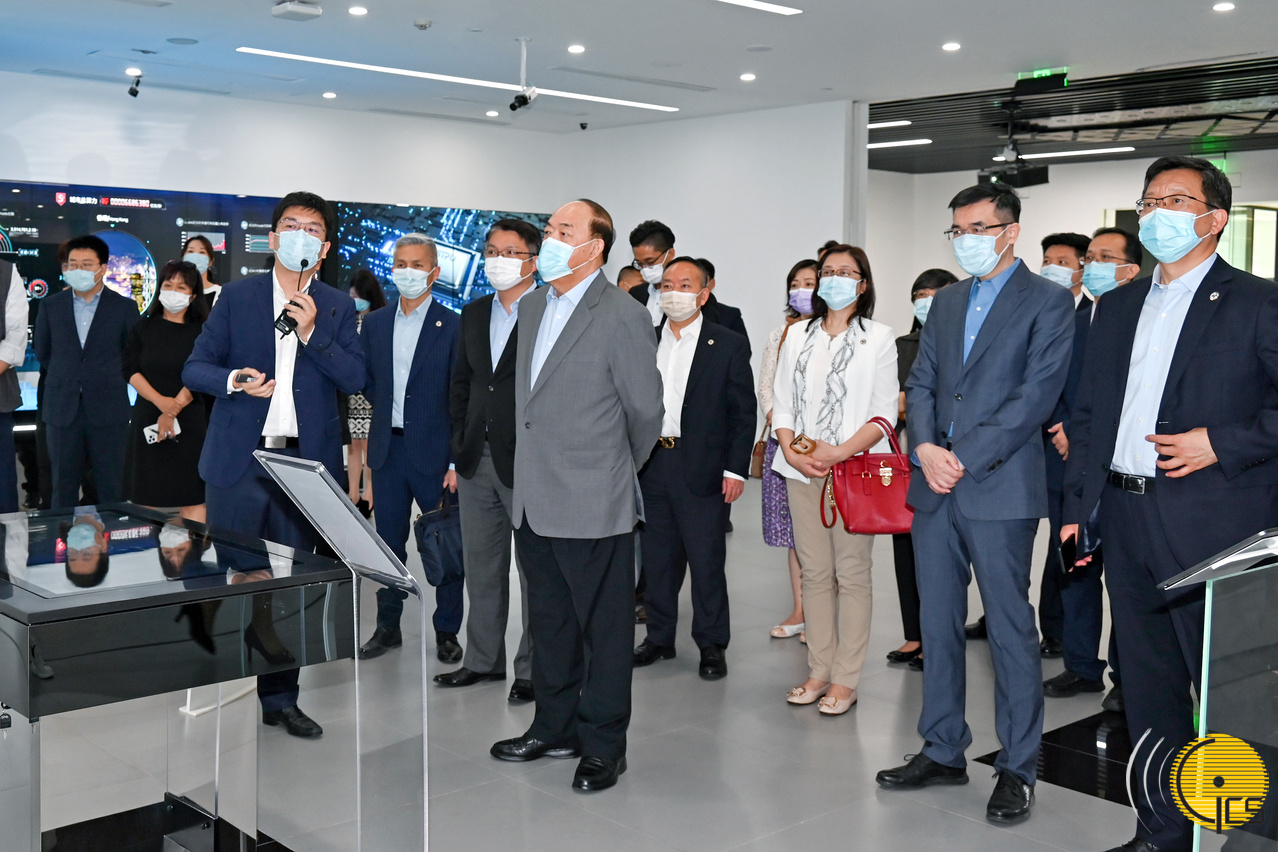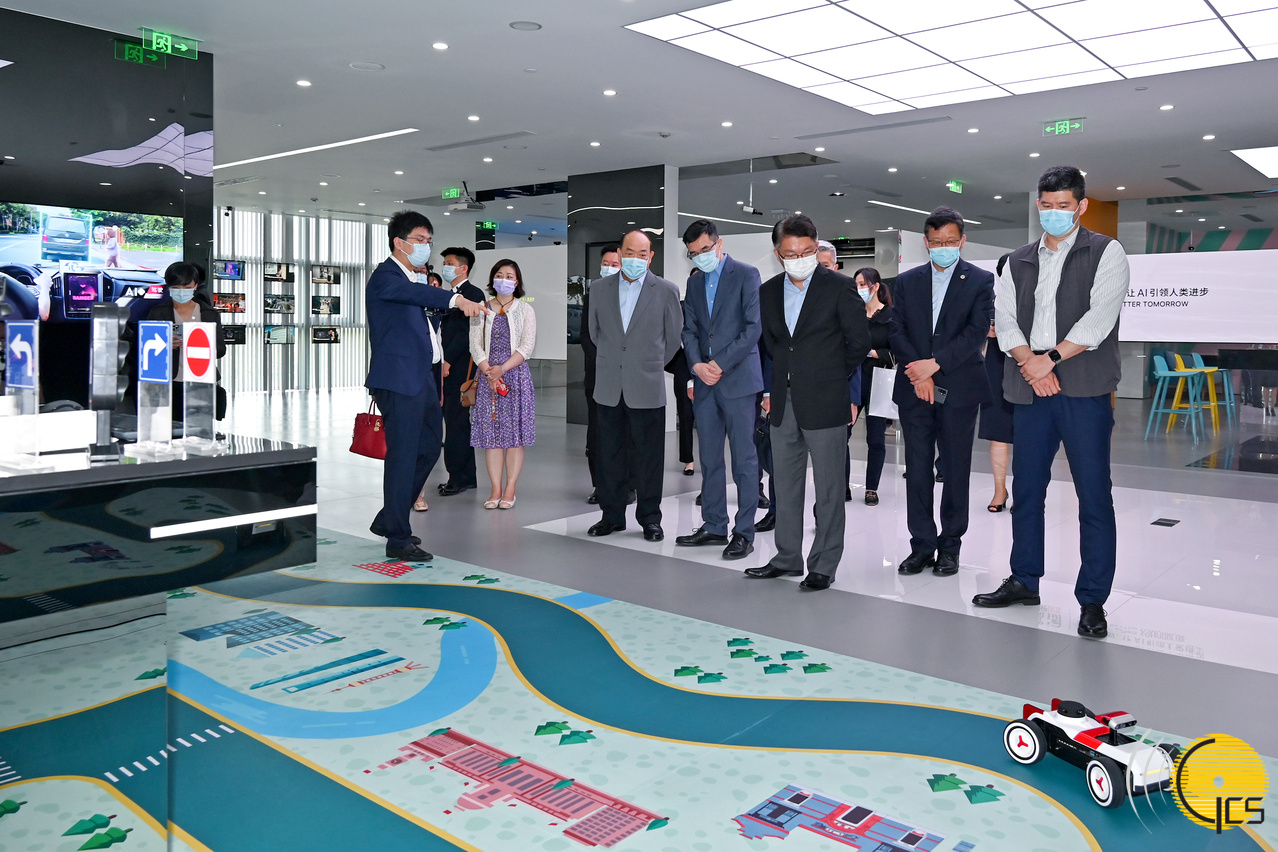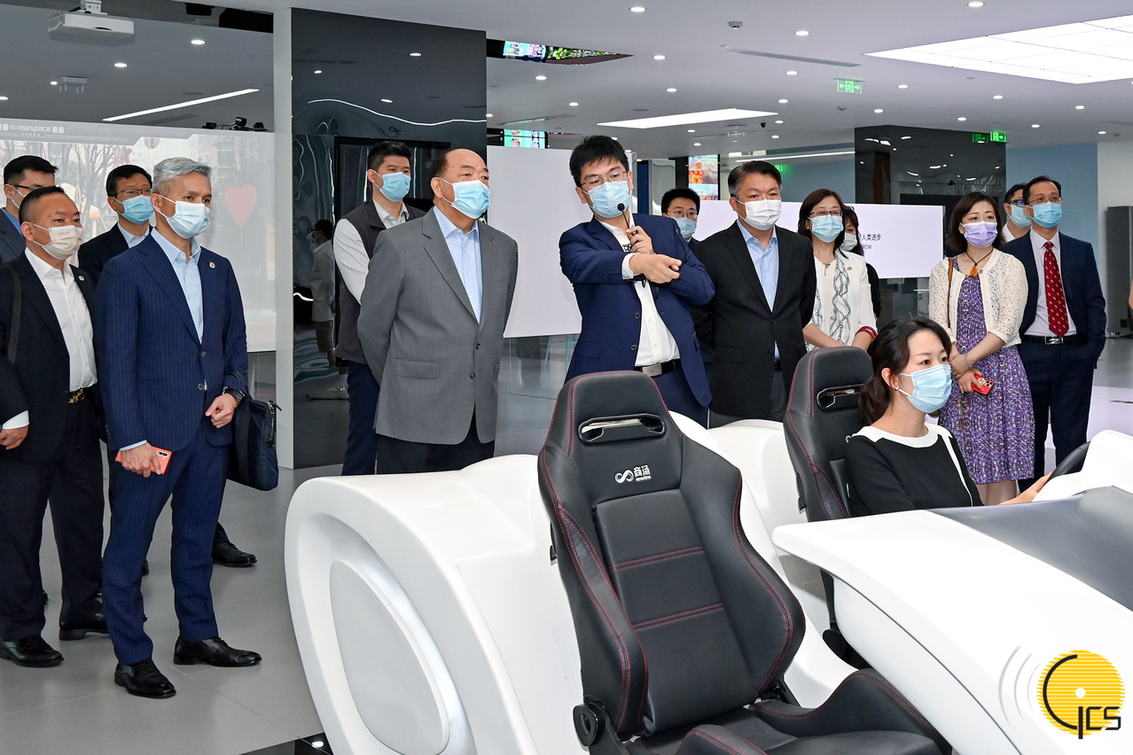 行政长官贺一诚一行参观上海一家智能科技公司,了解当地人工智能科技发展情况。