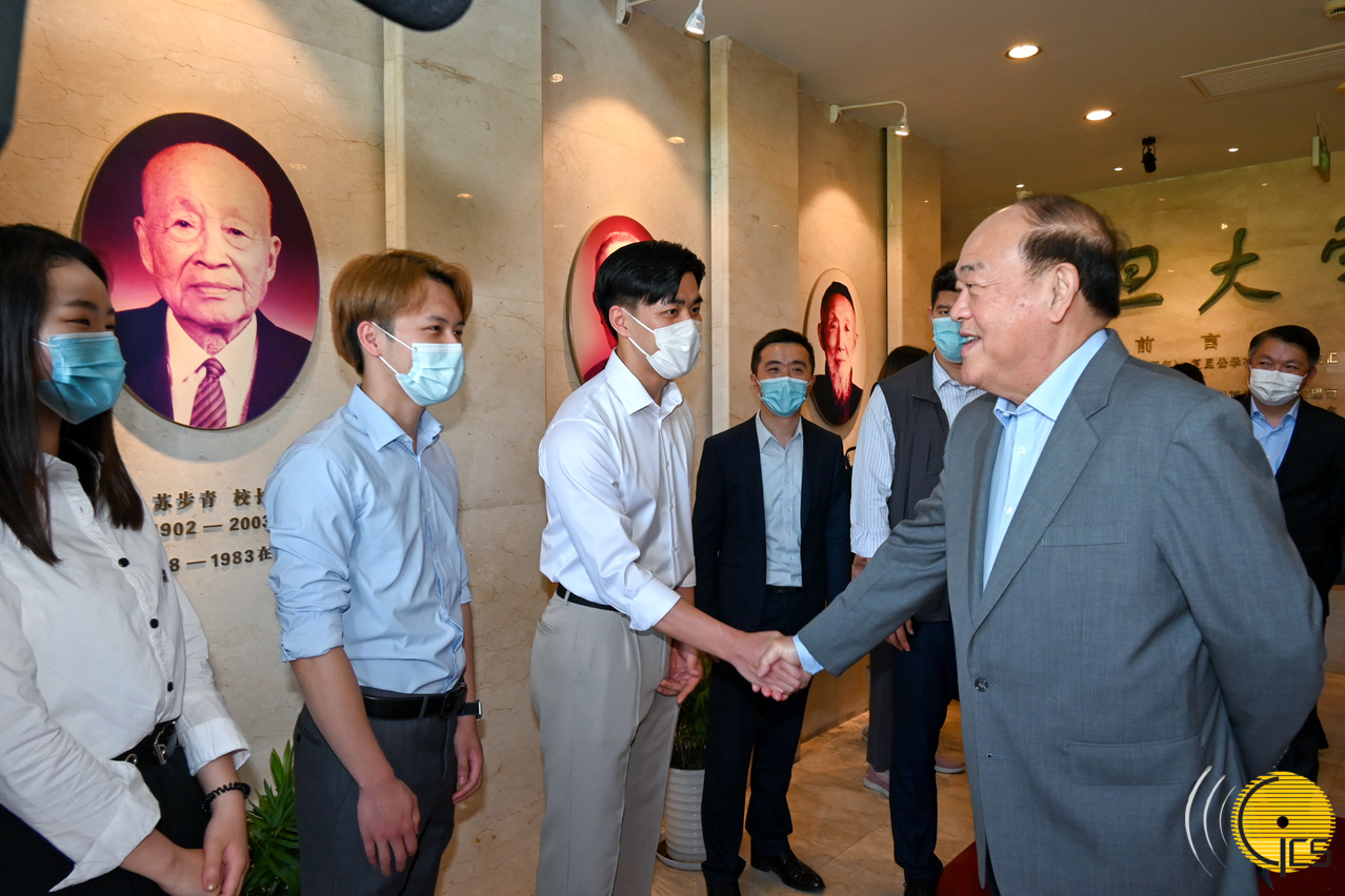 正在上海的行政长官贺一诚参观复旦大学校史馆,与在读港澳生会面交流。