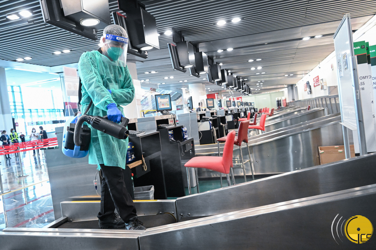 • 为加强“外防输入”的防疫措施,澳门国际机场每天均会利用能有效杀灭新冠病毒的消毒剂,喷洒机场的公共区域。