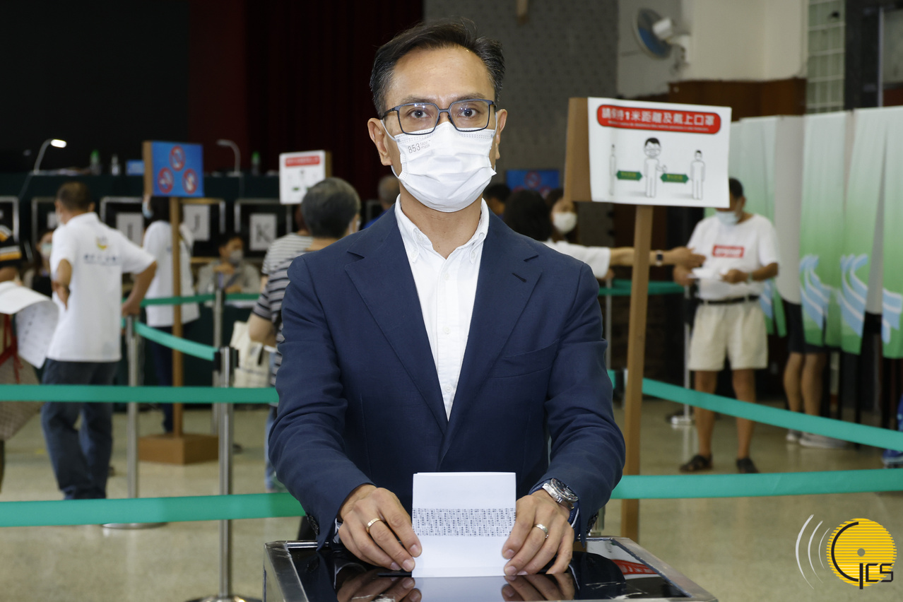 2021立法会选举:行政法务司司长张永春投票。
