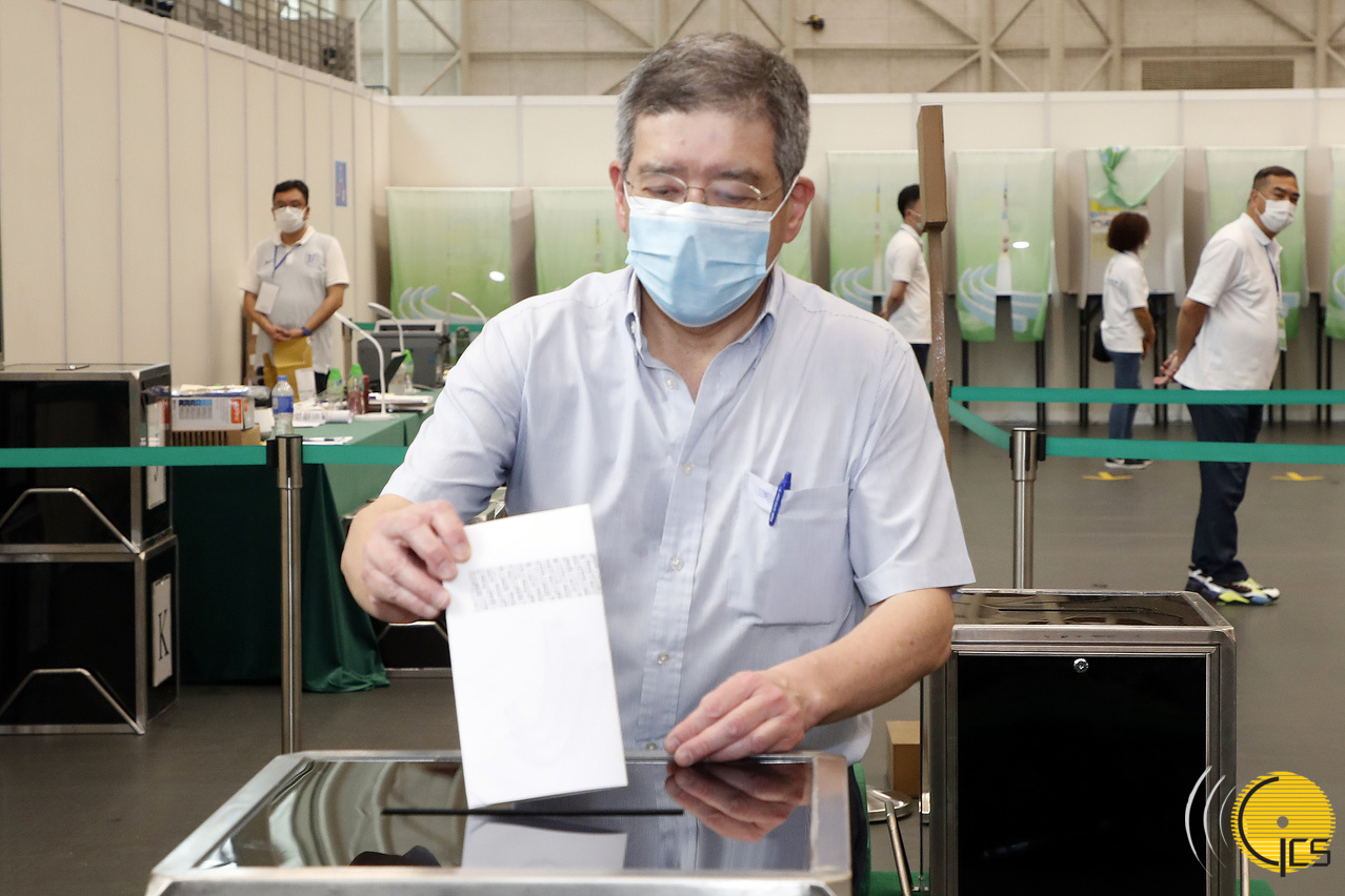 2021立法会选举:投票地点工作人员和投票站人员协助选民。