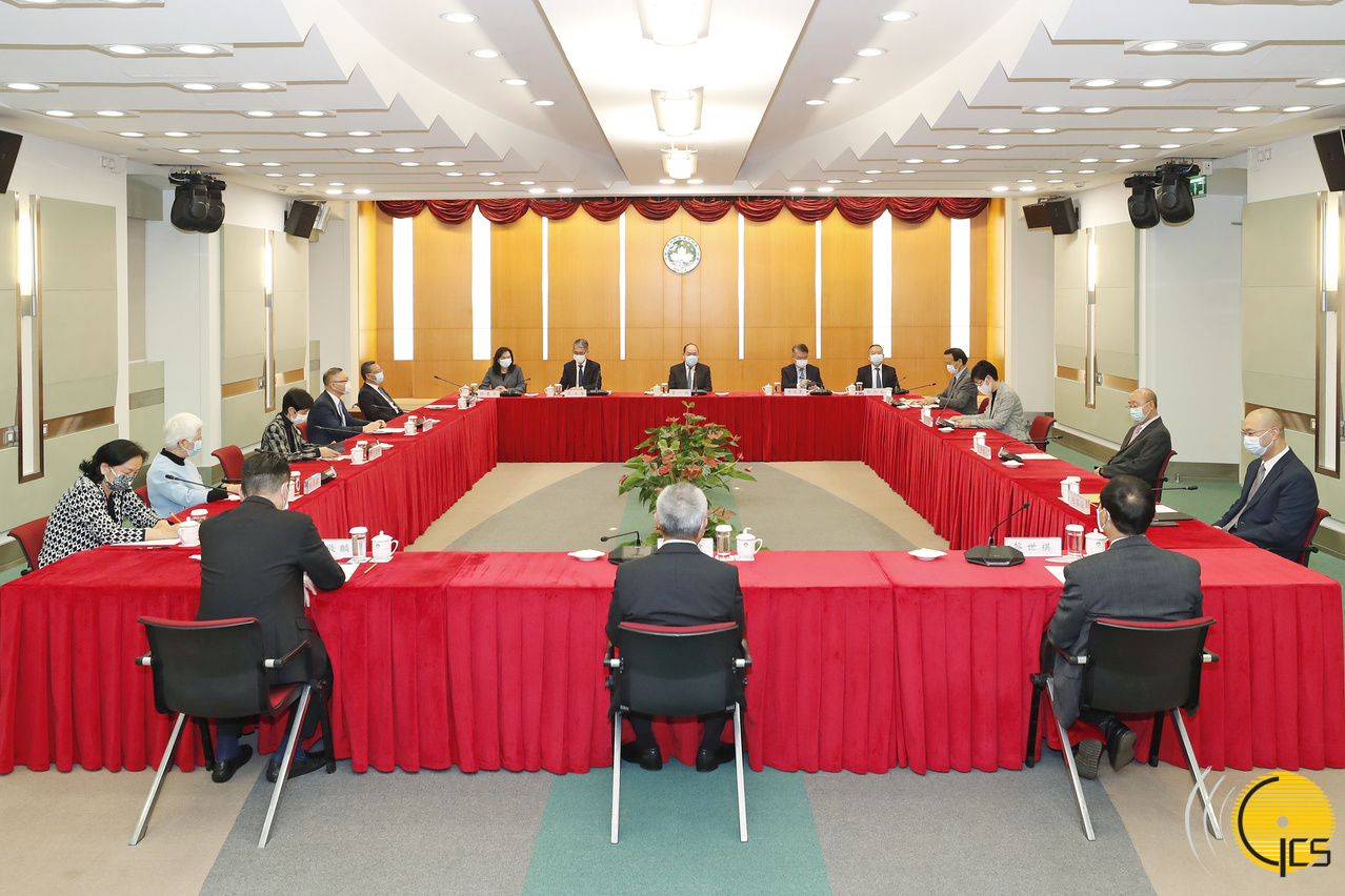 行政长官贺一诚会见澳门中小企业协进会一行,就制定2022年财政年度施政报告听取意见和建议。