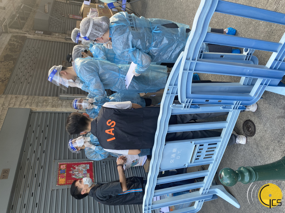 维生支援小组成员-市政署及社工局在大榄巷准备物资派发给围封大厦的居民。