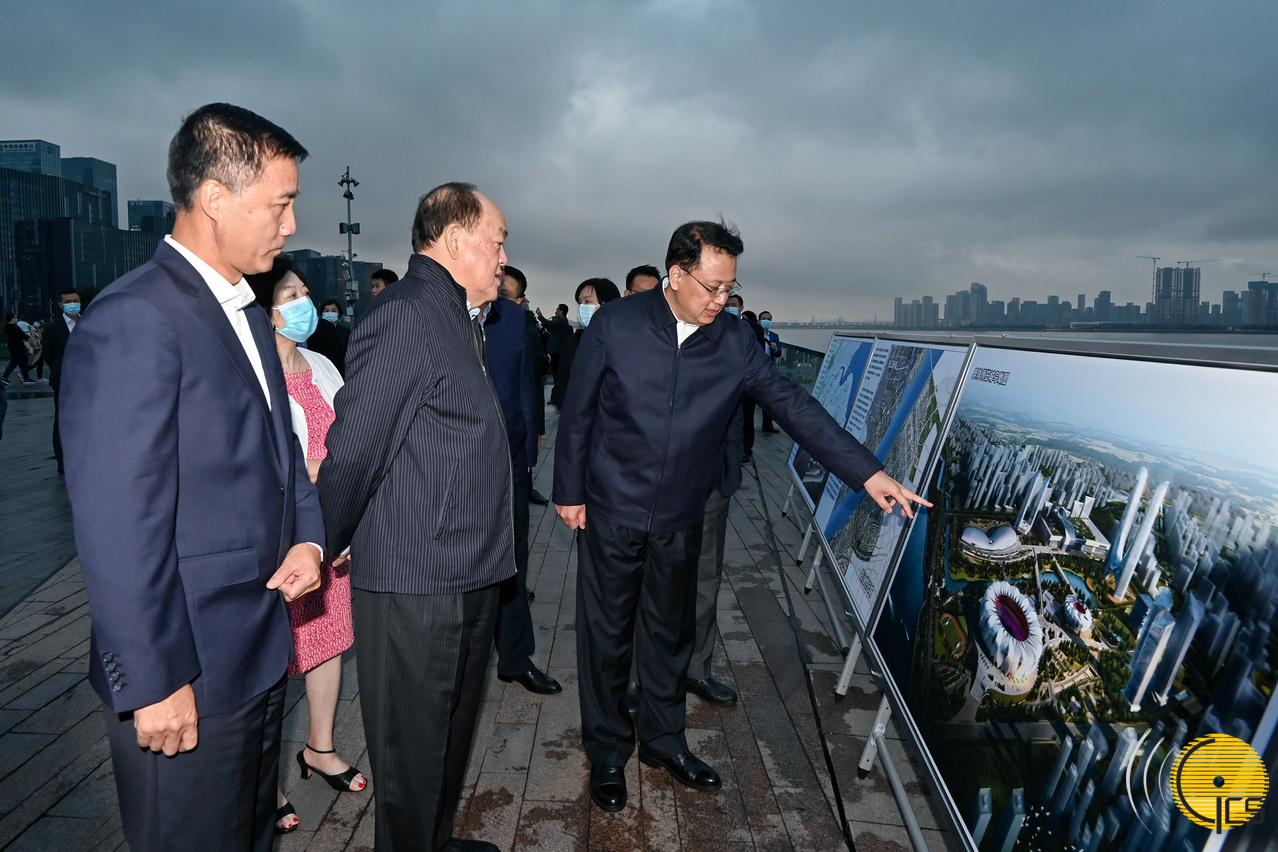行政长官贺一诚一行考察现代城市公园杭州城市阳台,了解当地的城市规划建设情况。