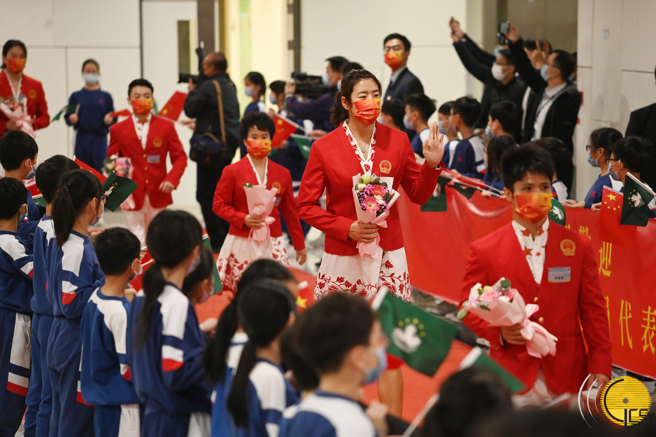 逾100名本澳学生在港珠澳大桥澳门口岸热烈欢迎国家奥运精英运动员代表团访澳