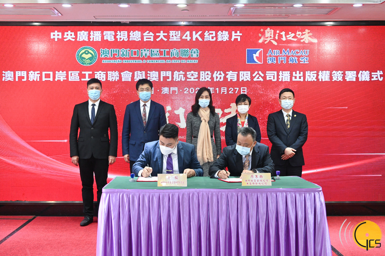 社会文化司司长欧阳瑜出席中央广播电视总台大型4K纪绿片«澳门之味»澳门新口岸区工商联会与澳门航空股份有限公司播出版权签署仪式