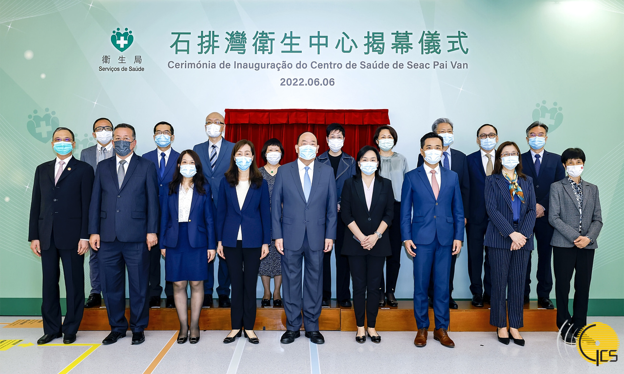 行政长官贺一诚在社会文化司司长欧阳瑜、卫生局局长罗奕龙及副局长郑成业陪同下,主持石排湾卫生中心揭幕仪式。