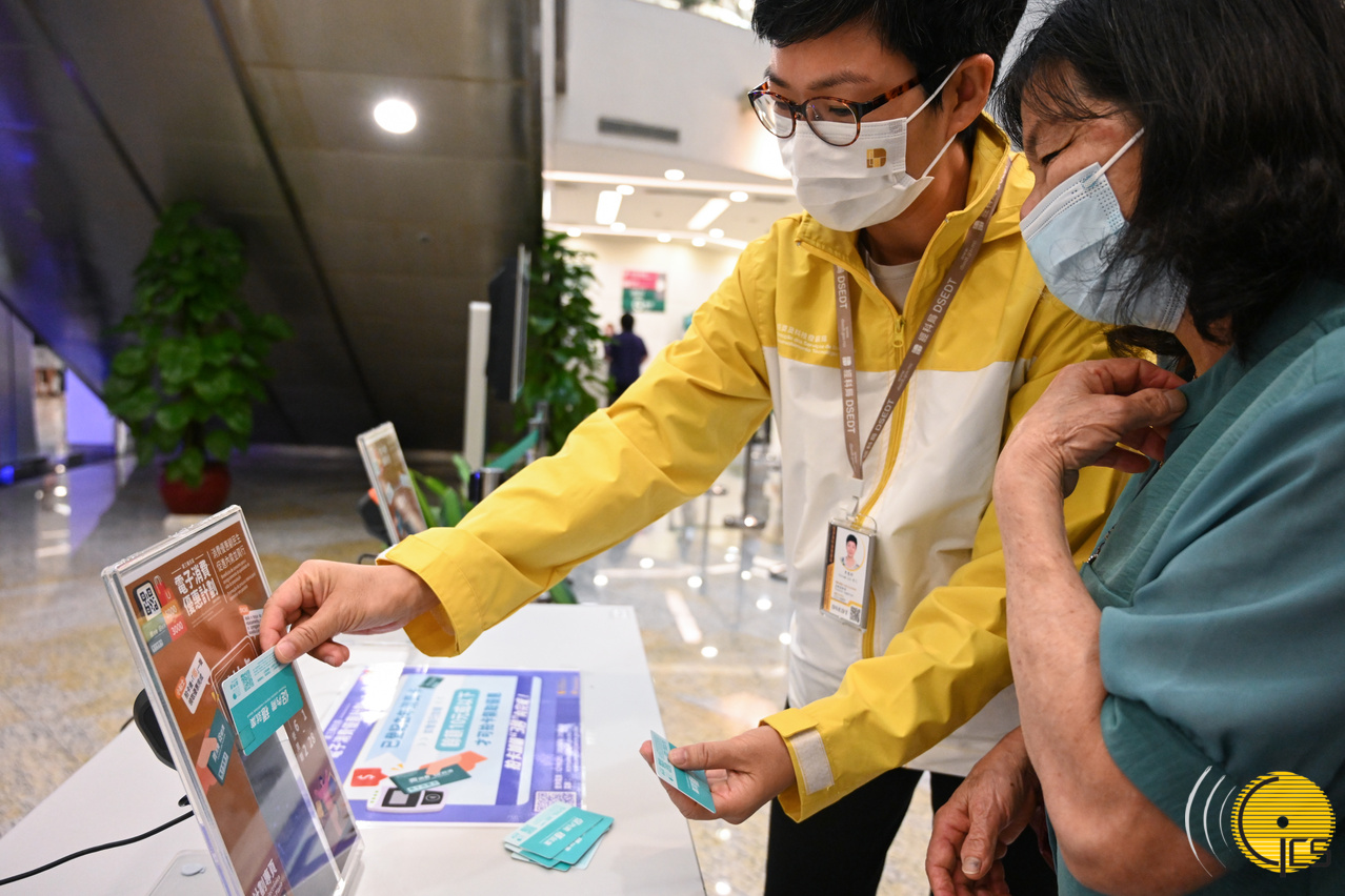 “第三轮抗疫电子消费优惠”的首个领取日,各站点工作人员细心协助市民完成相关程序。