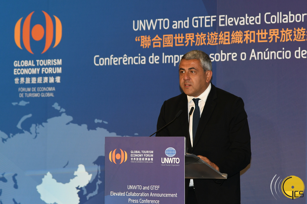联合国世界旅游组织秘书长祖拉布·波洛利卡什维利( Zurab Pololikashvili)在新闻发布会上致辞
