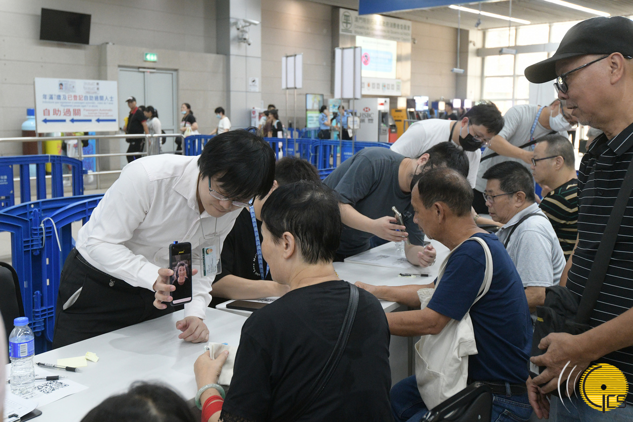 工作人员在口岸协助居民以“一户通”应用程式绑定“电子身份”