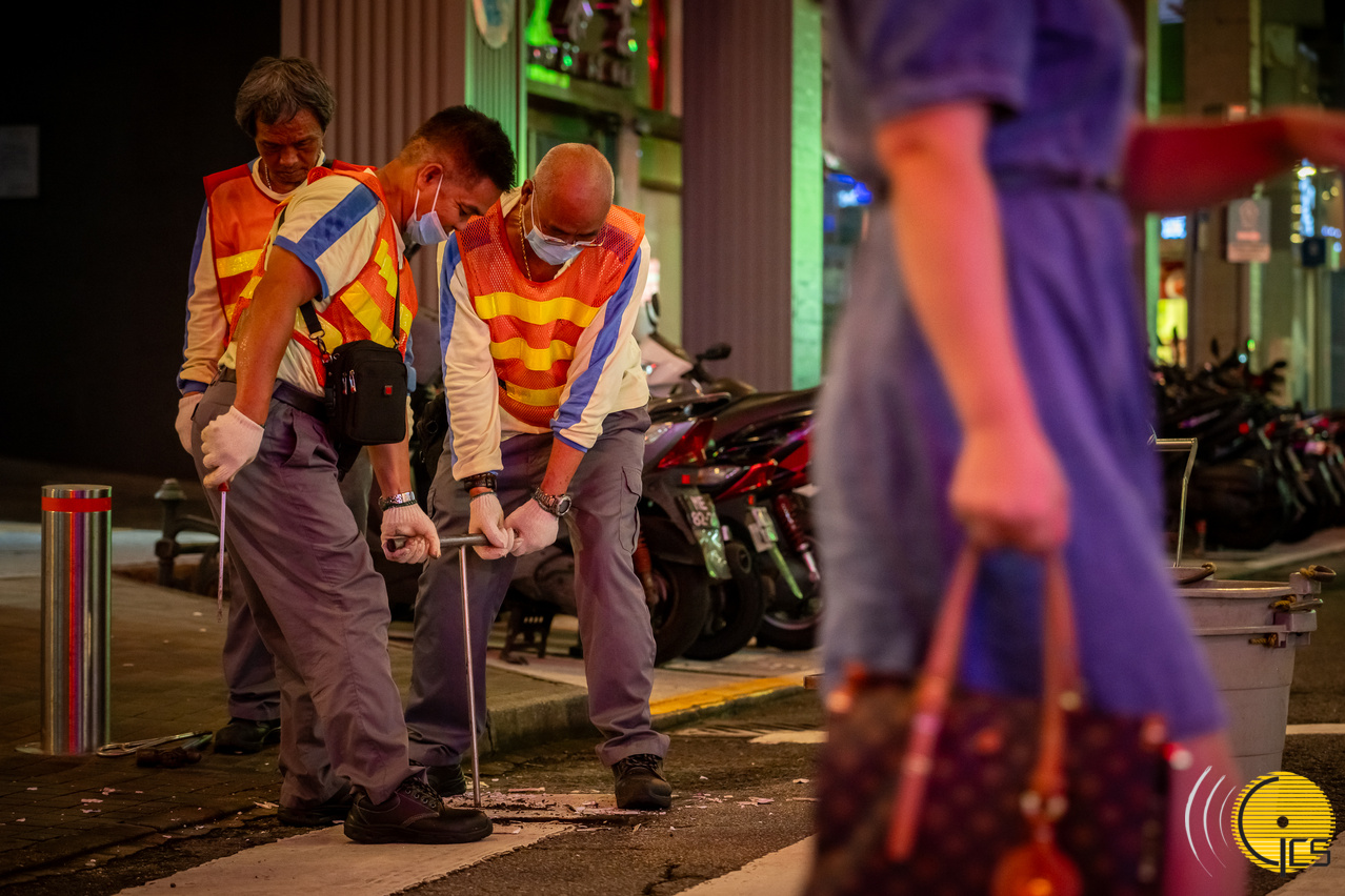 市政署渠务人员不分昼夜到各区排查、疏通及维护下水道畅通。