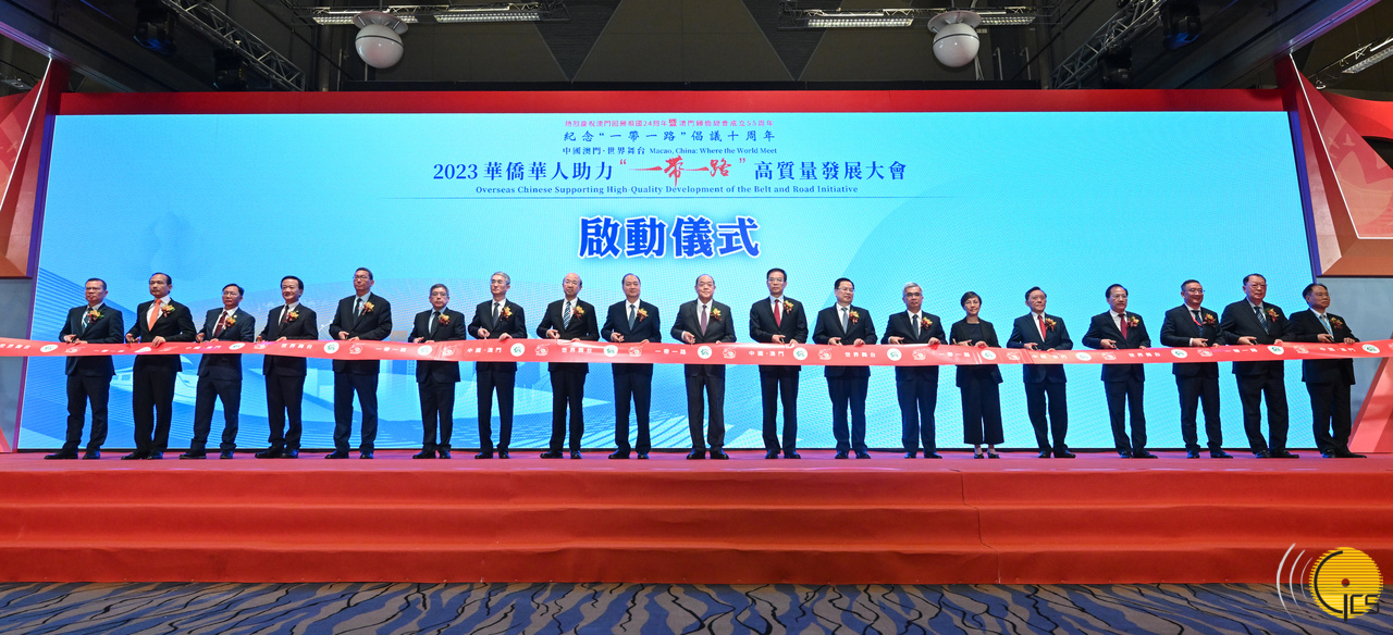 行政长官贺一诚等嘉宾主持纪念“一带一路”倡议十周年“中国澳门·世界舞台——华侨华人助力‘一带一路’高质量发展大会”启动仪式