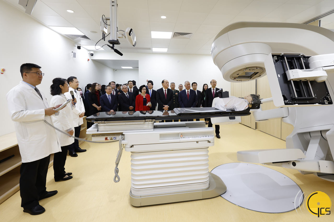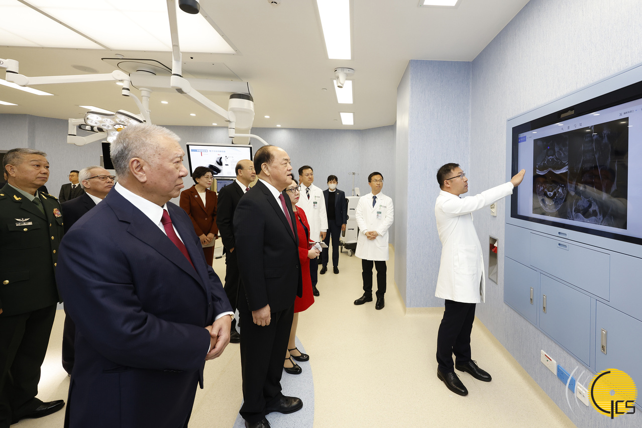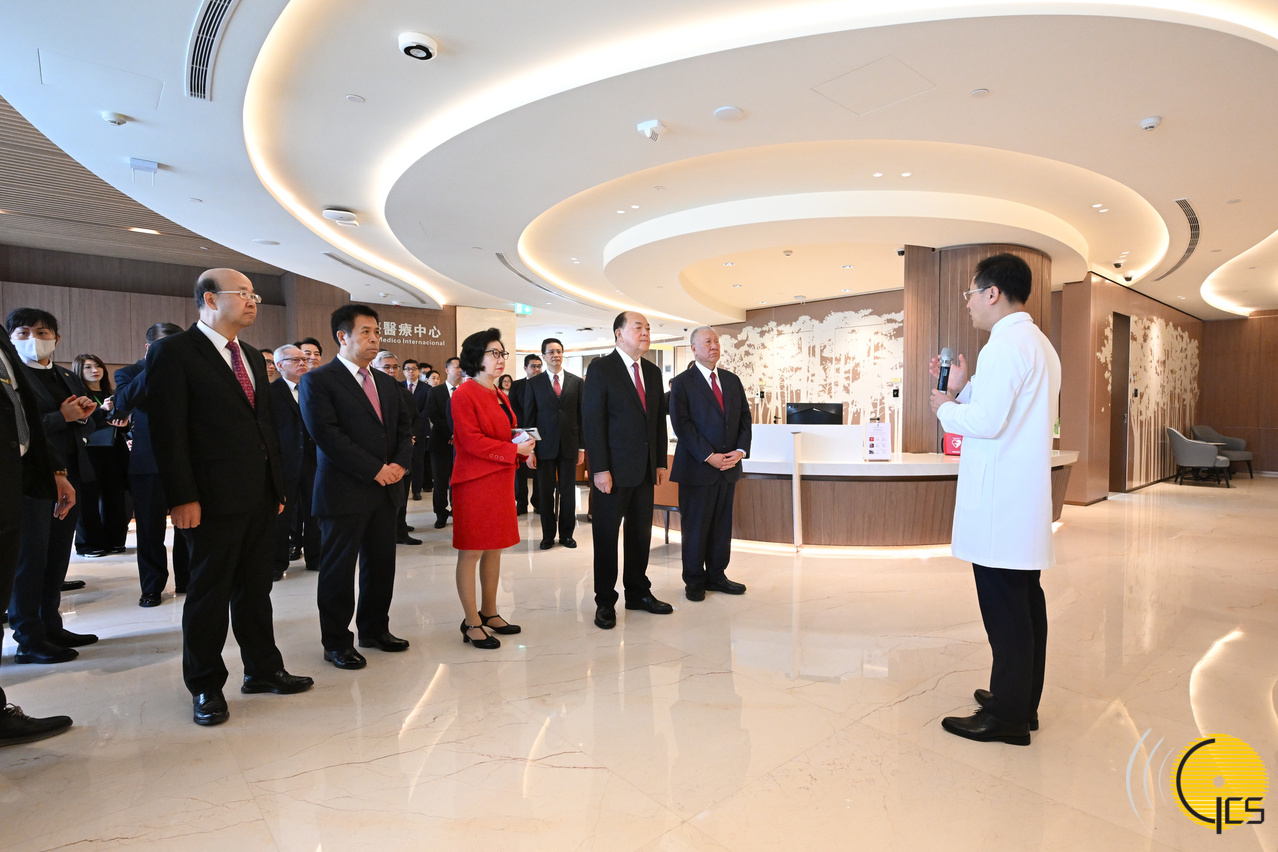 行政长官贺一诚等嘉宾参观澳门协和医院,了解其先进医疗设备。