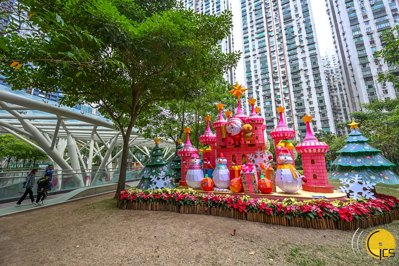 公园内设有圣诞布置,丰富社区居民的节庆体验。