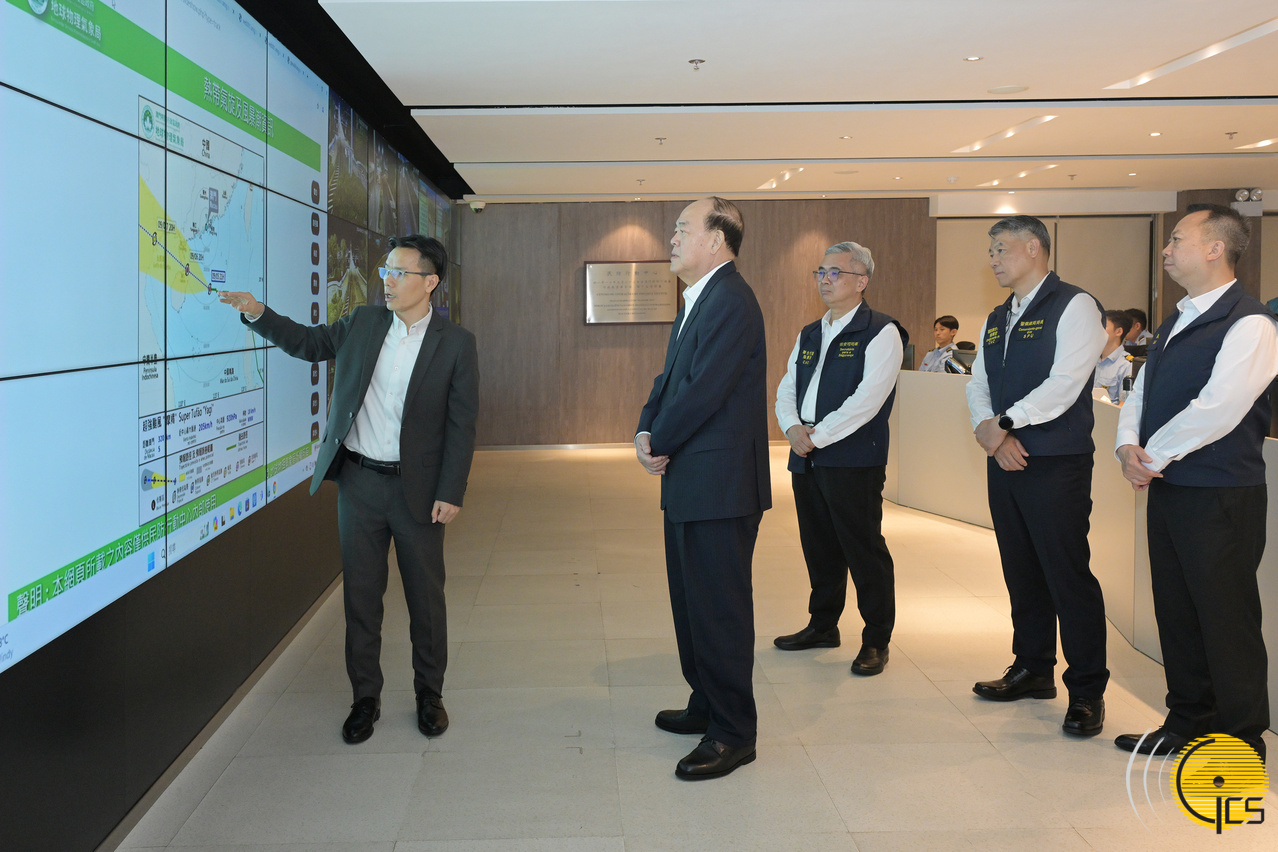 行政长官贺一诚巡视民防行动中心,听取汇报应对超强台风“摩羯”的工作部署。