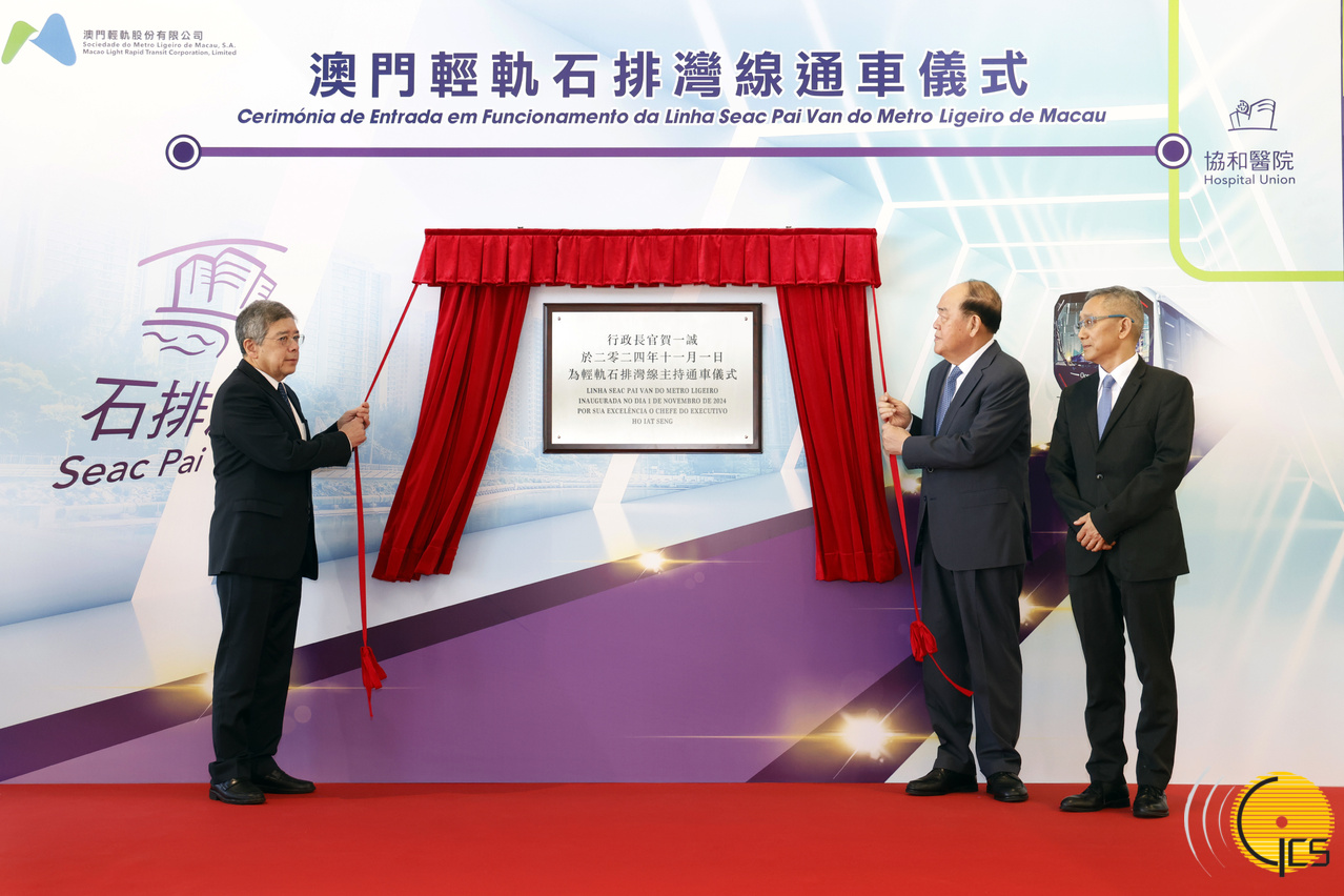 行政长官贺一诚主持轻轨石排湾线通车的揭幕仪式。