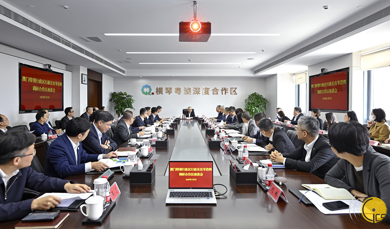 行政长官岑浩辉与横琴粤澳深度合作区执行委员会成员、执委会属下机构的领导等进行座谈。