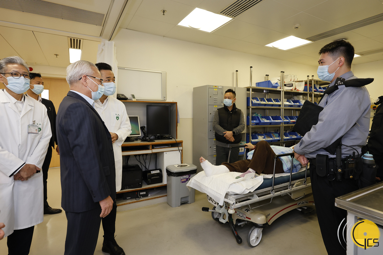 行政长官岑浩辉视察仁伯爵综合医院,瞭解新春瞭期间的医疗服务,并慰问当值的医护人员。