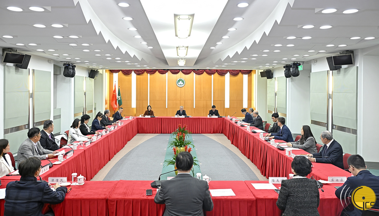 行政长官岑浩辉与澳区全国政协委员座谈,就制定2025年财政年度施政报告听取意见和建议。