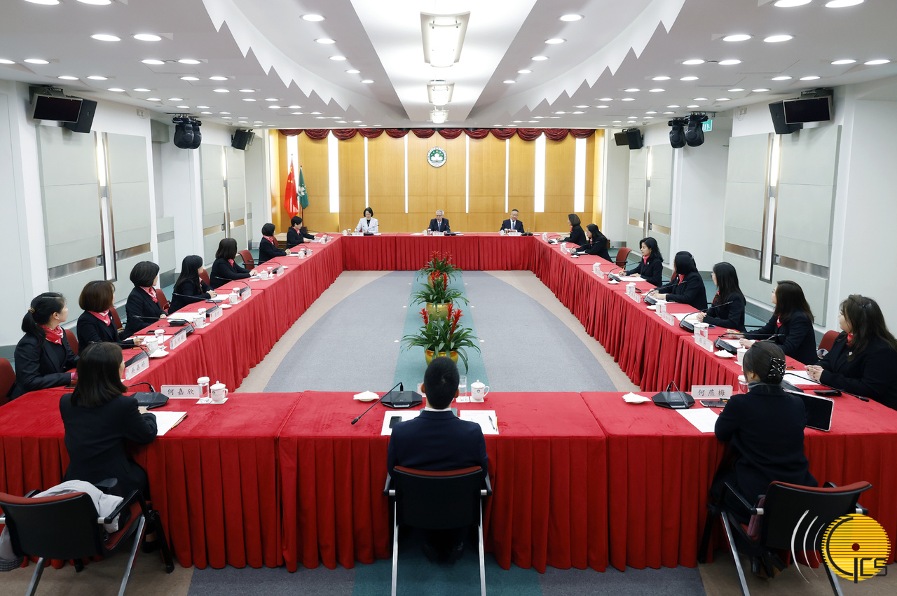 行政长官岑浩辉与澳门妇女联合总会一行座谈,就制定2025年财政年度施政报告听取意见和建议。