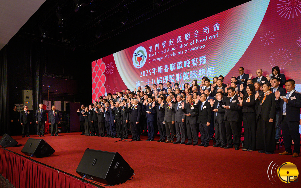 经济财政长司司长戴建业出席澳门餐饮业联合商会2025年新春联欢晚宴暨该会第28届理监事就职典礼。