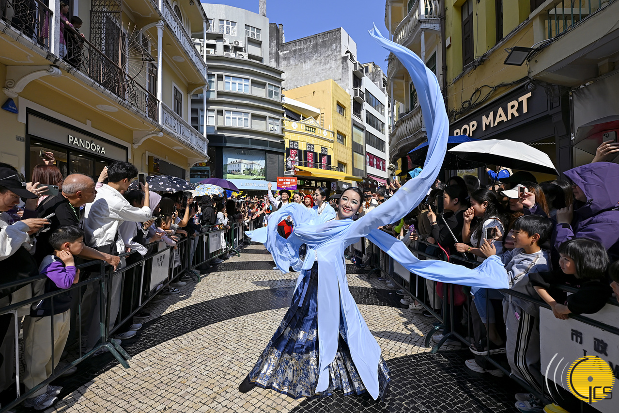 大巡游队伍由大三巴牌坊出发,穿越澳门历史城区的旧街老巷,抵达板樟堂前地与居民旅客近距离互动。