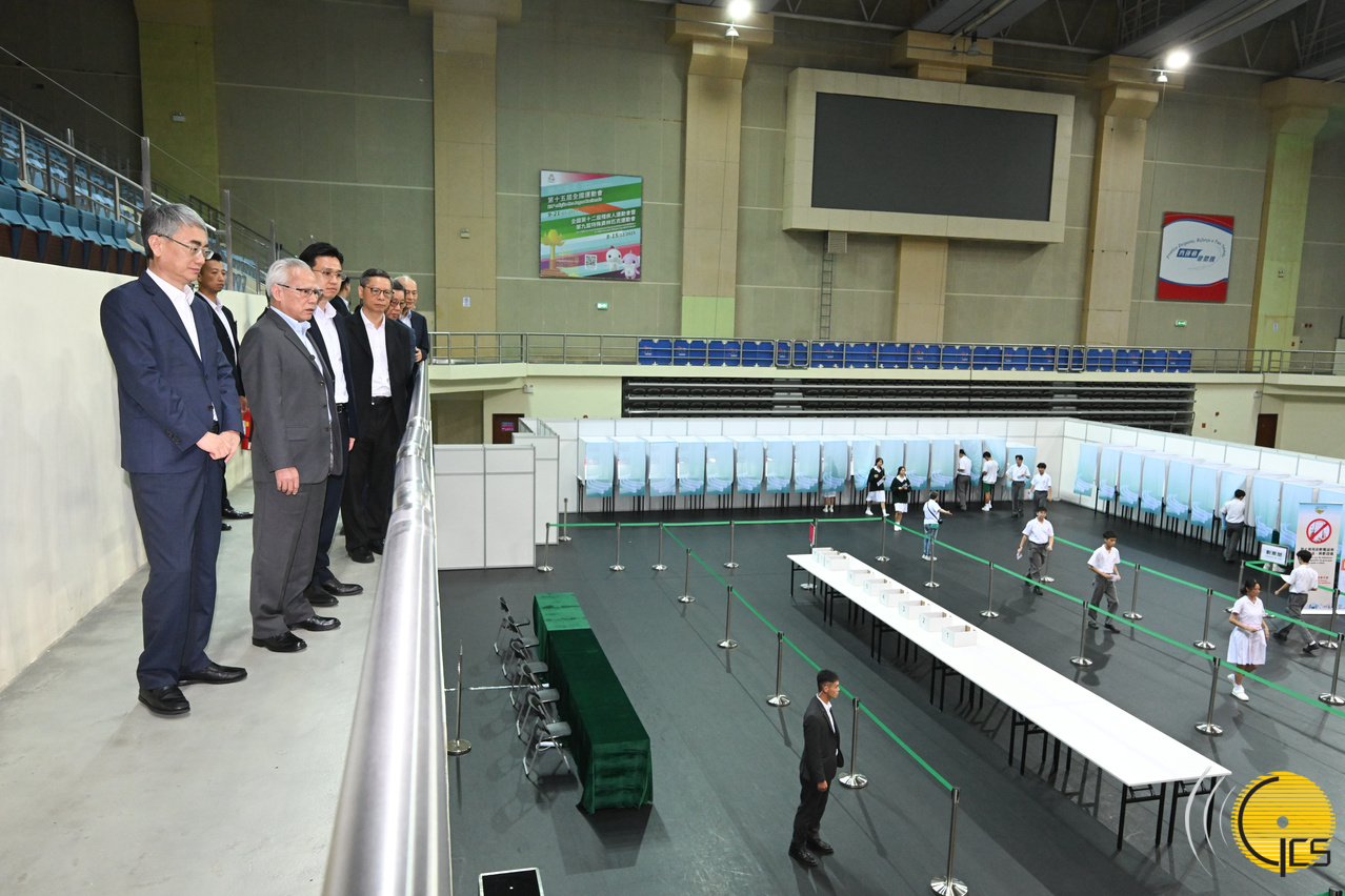 行政长官岑浩辉视察设于塔石体育馆主场馆的直选投票站,并了解模拟票站的运作情况。