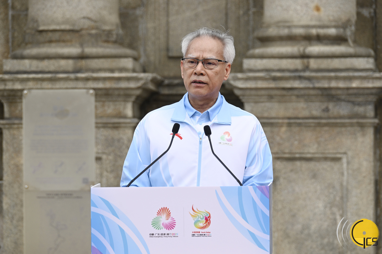 十五运会组委会和残特奥会组委会执行主任、行政长官岑浩辉在仪式上致辞。