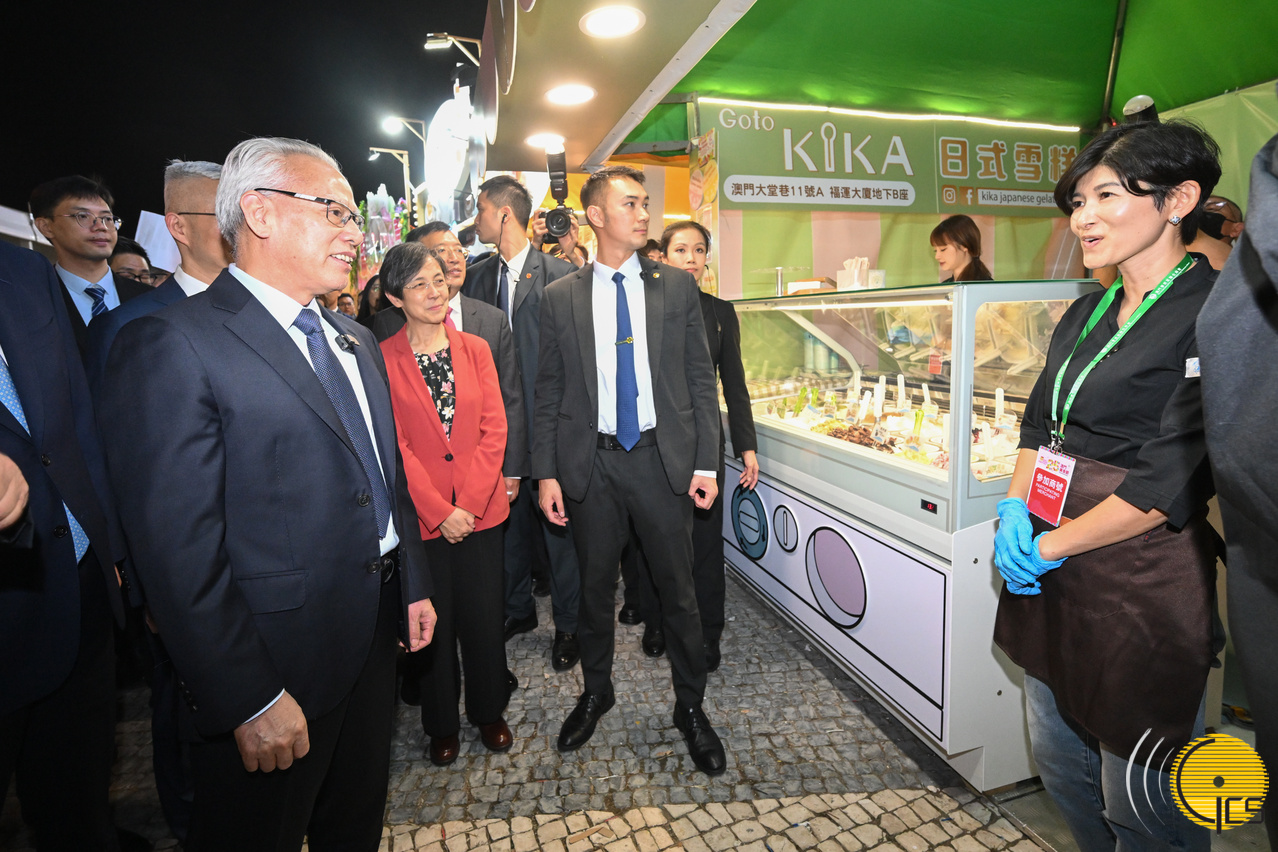行政长官岑浩辉参观第25届澳门美食节摊位。