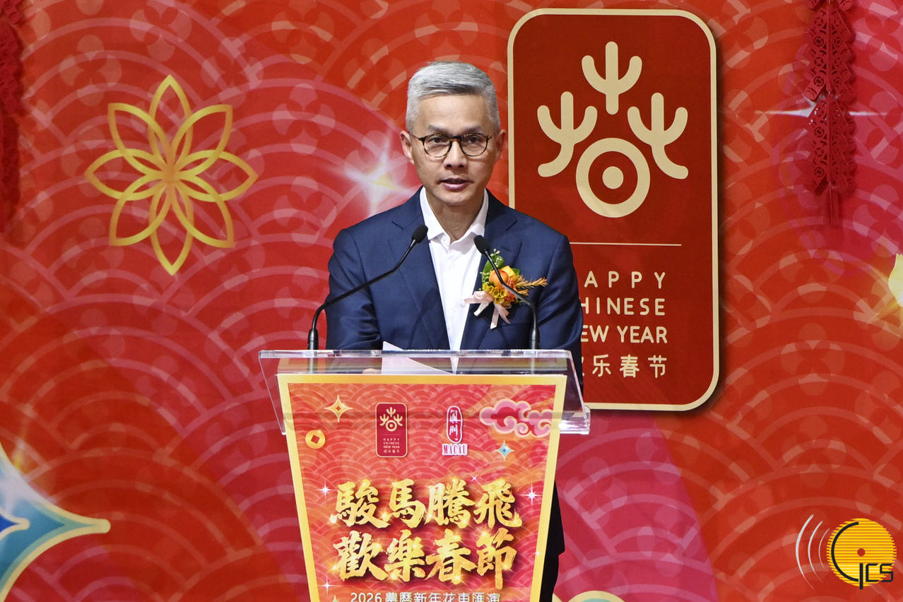经济财政司司长戴建业在“骏马腾飞 欢乐春节 2026农历新年花车汇演”开幕仪式上致辞。