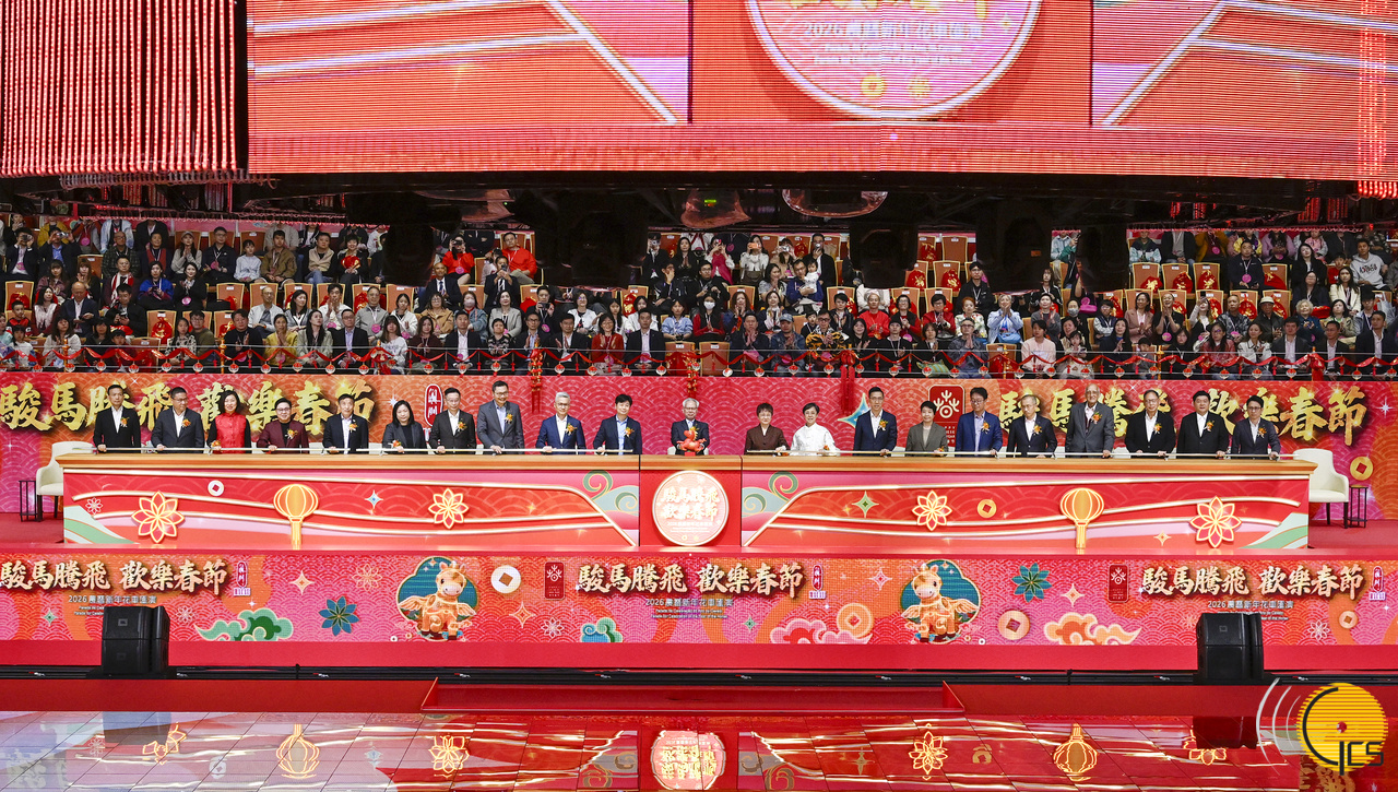 行政长官岑浩辉等一众主礼嘉宾共同主持“骏马腾飞 欢乐春节 2026农历新年花车汇演”开幕仪式。
