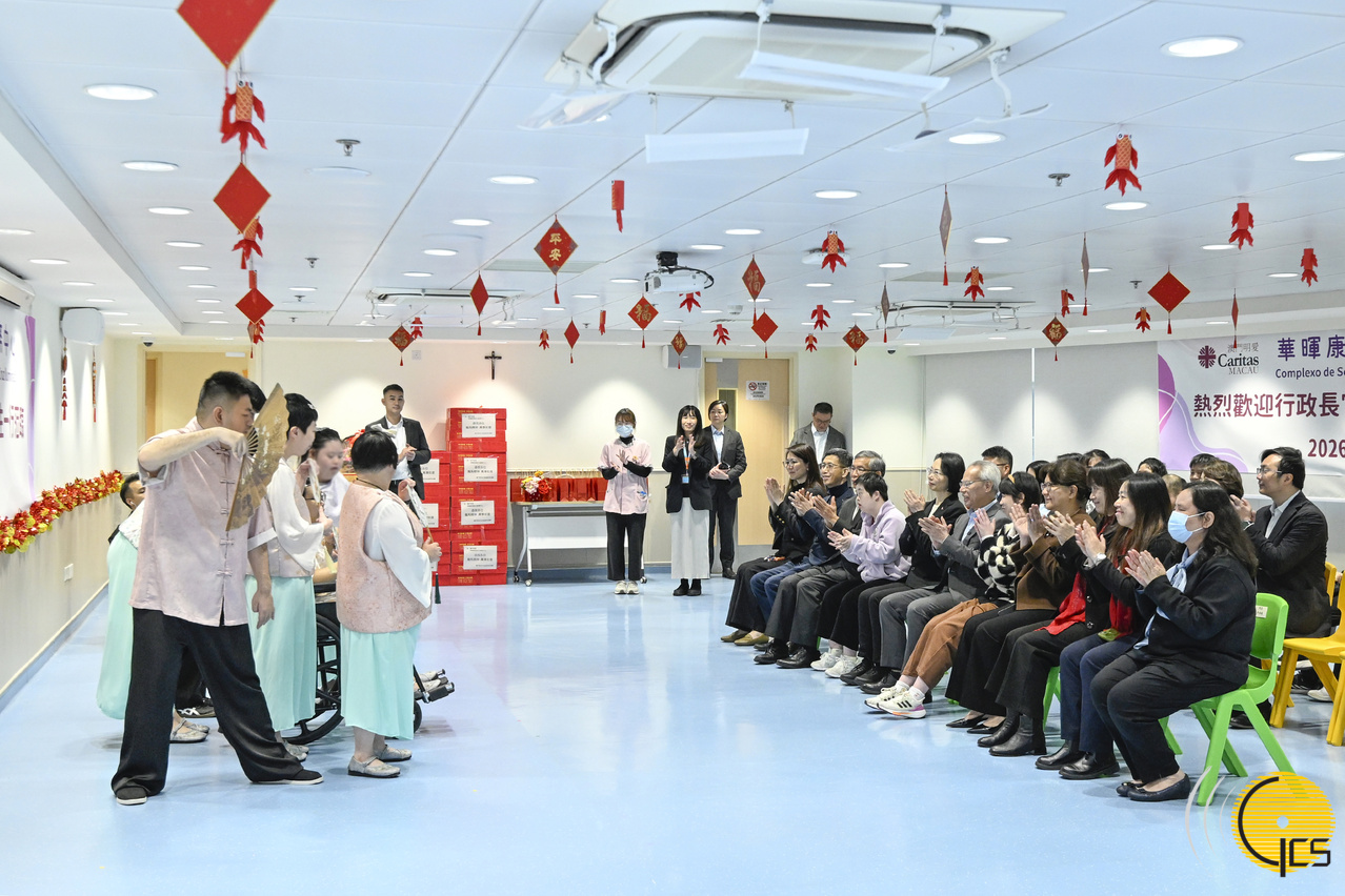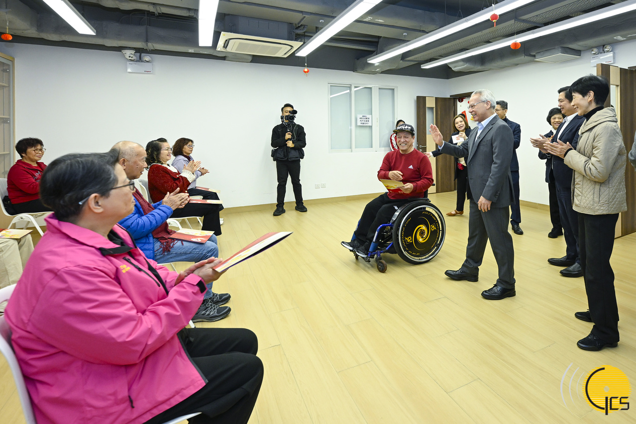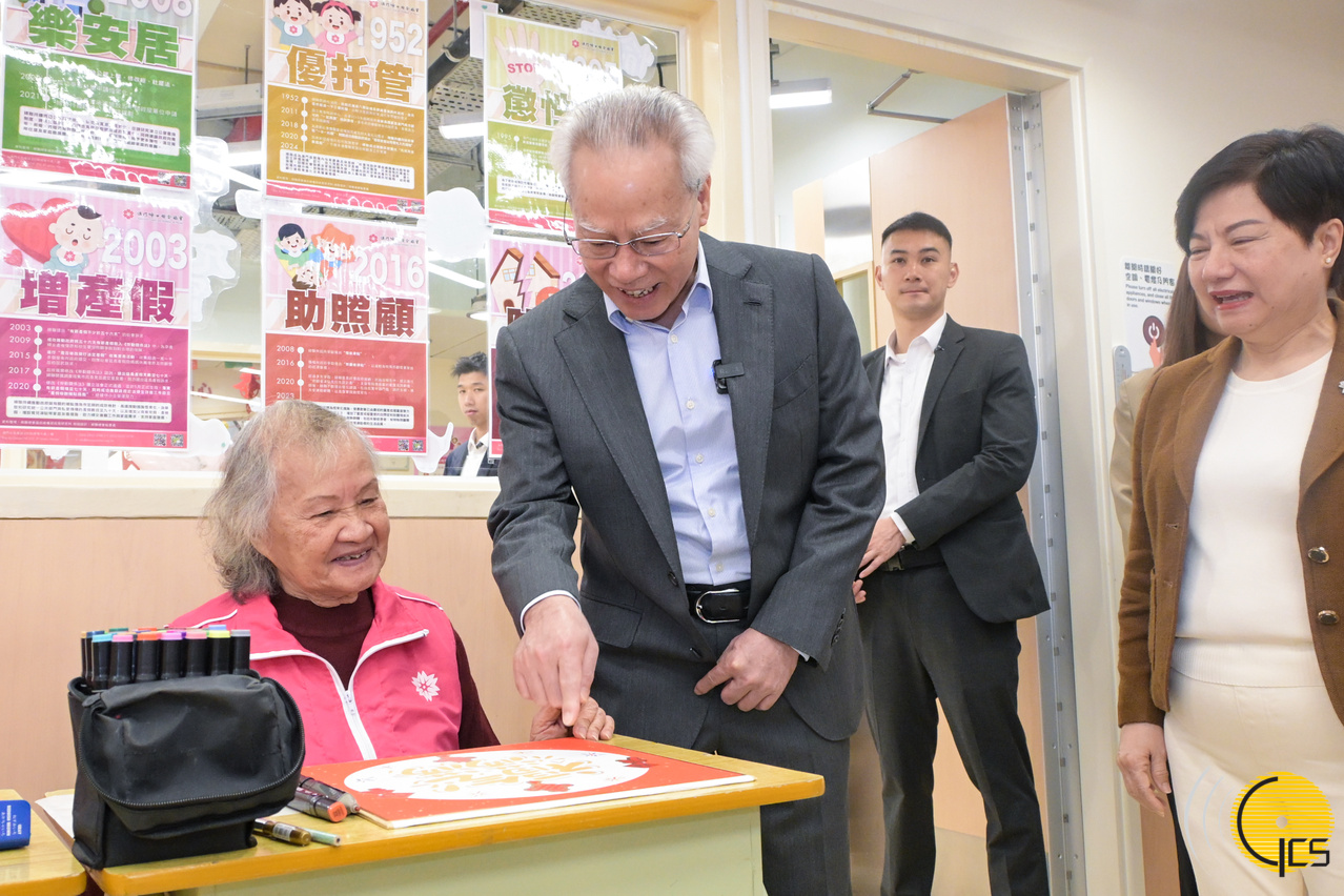 行政长官岑浩辉探访澳门明爱开办的华晖康复综合服务中心。