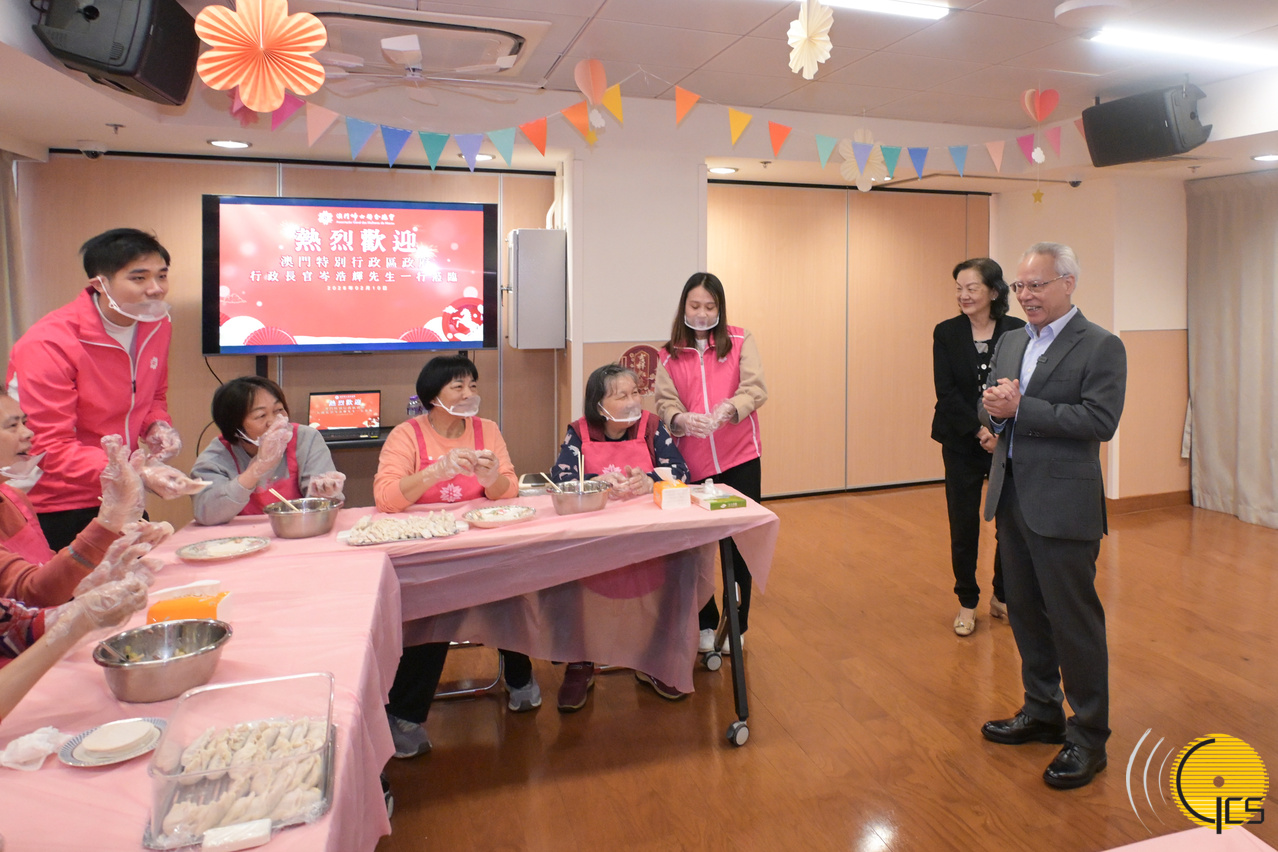 行政长官岑浩辉探访澳门工会联合总会的望厦老人中心。