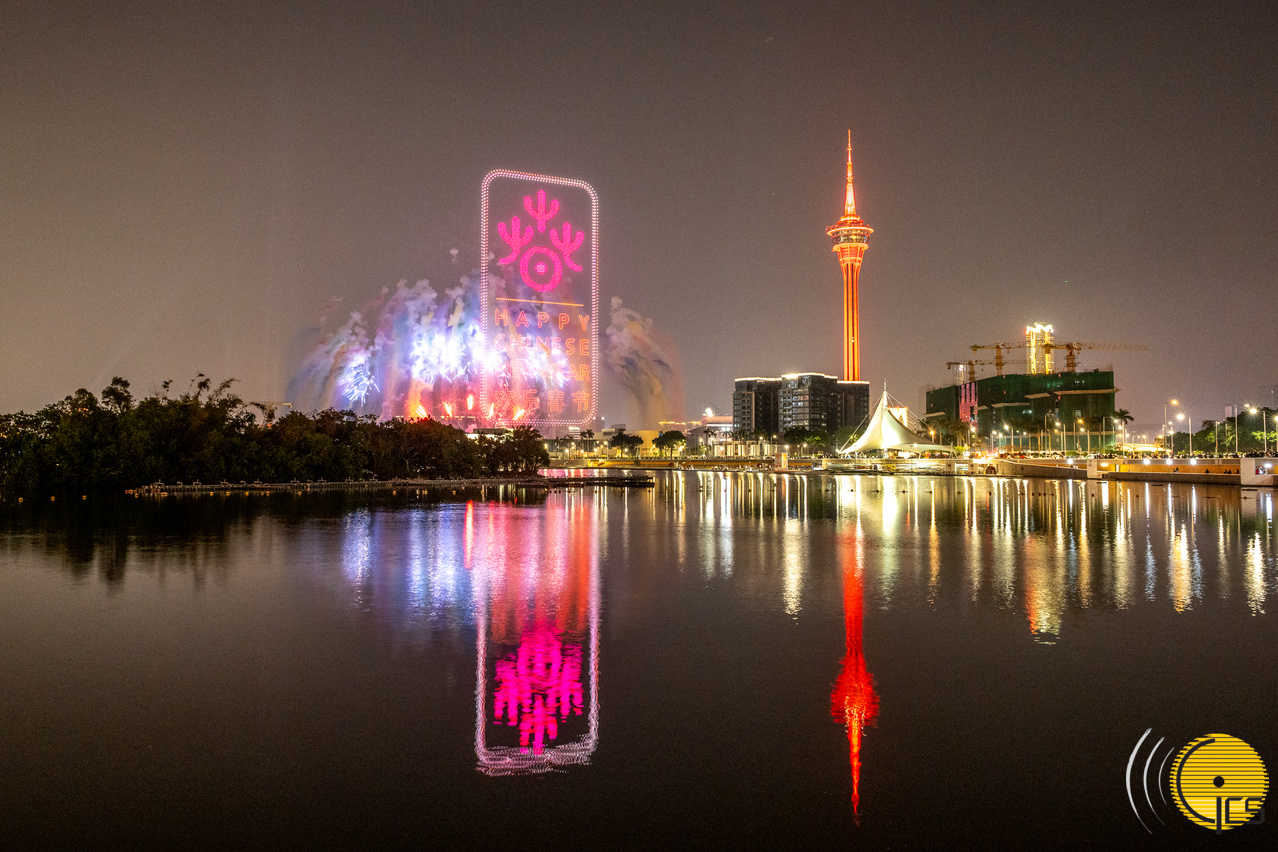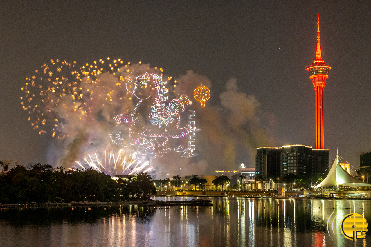“金骏云翔 欢乐春节”2026无人机烟花汇演精彩亮相,首次以3,888架无人机编队融合烟花、音乐及镭射效果,为居民及游客带来耳目一新的视觉享受。