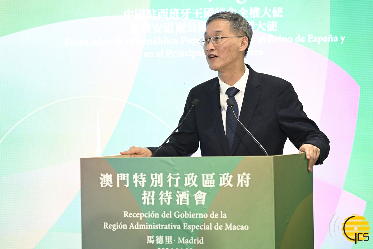 中国驻西班牙大使兼驻安道尔大使姚敬在招待酒会上致辞。