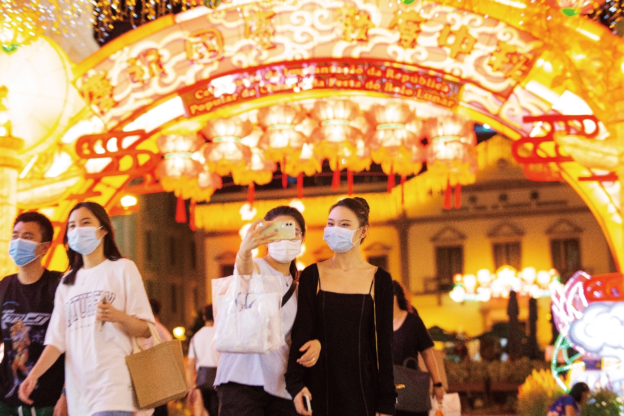 中秋前后,市民及旅客到议事亭前拍照,留下美好回忆。