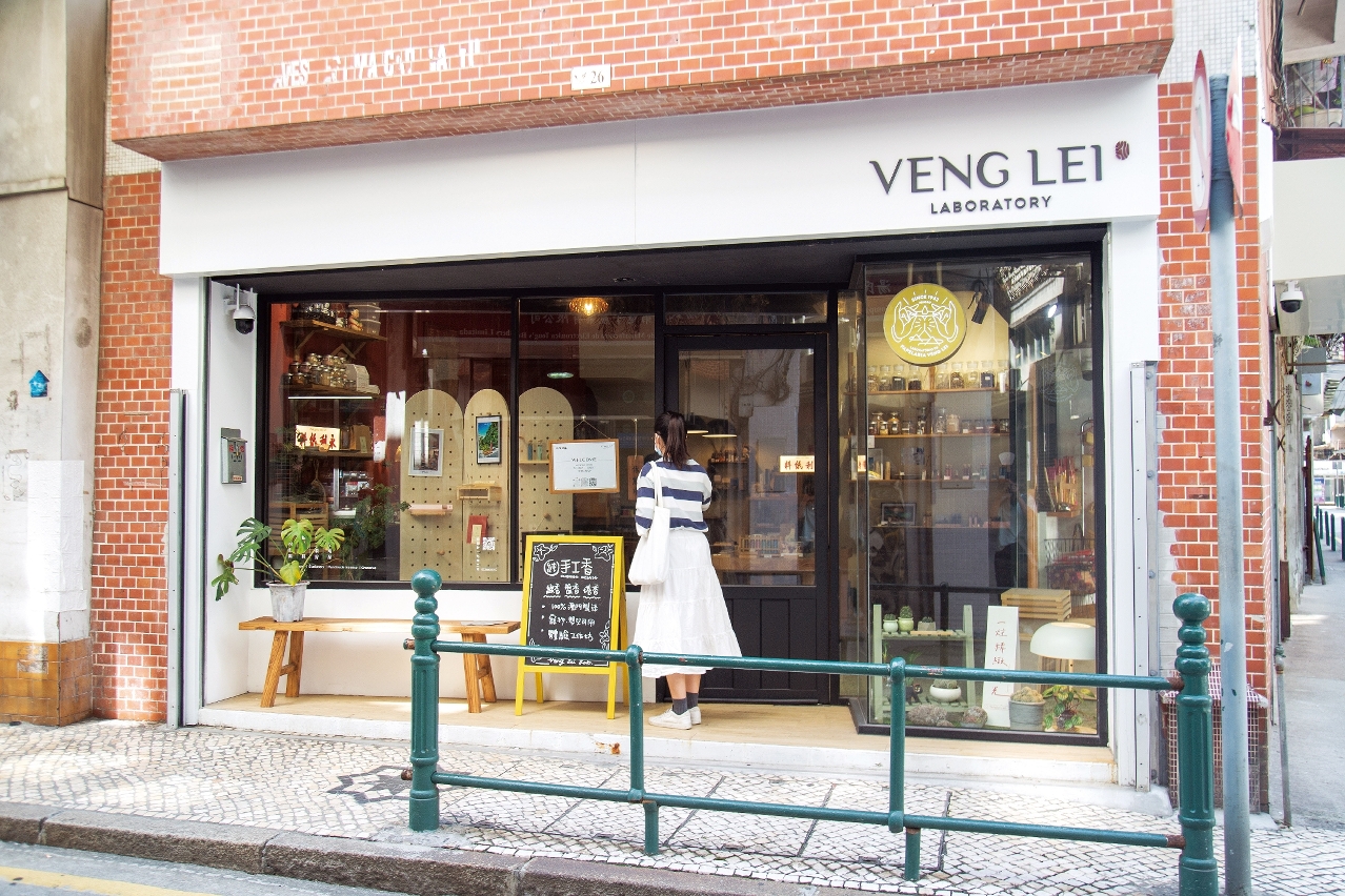 漫步于草堆街,在一个十字路口,可以看见一间新旧交融的店铺,街角侧面的手写旧式招牌上书「永利纸料」,门前摆放着神香及纸料等祭祀用品,店铺正面是结合时尚、精致韵味设计的门面,店名是外文「VENG LEI」,在旧社区中特别耀眼。