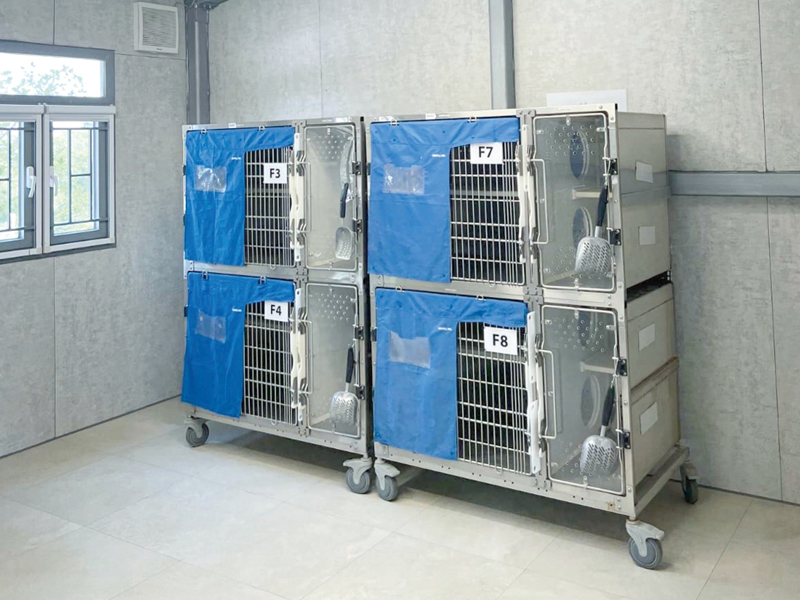 为进一步优化市政狗房的动物收容空间及硬件配套设施,市政署于2023年2月以预制组合屋的方式,完成在路环市政狗房原停车场位置增建动物仓舍,以及新的医疗手术、办公及后勤辅助空间。现时已有部份待领养动物迁至路环市政狗房,连同澳门市政狗房合计共有110个狗笼和66个猫笼,整体收容空间增加近四成半。
