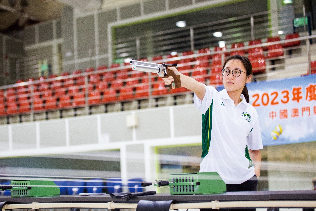 去年,周楚善加入了澳门射击代表队,首次代表澳门出战便将是第19届杭州亚运会。她谦虚说:「压力不算很大,始终讲资历也谈不上,但可以学习专业射手的技术,体会备战心态,是我最期待的。」