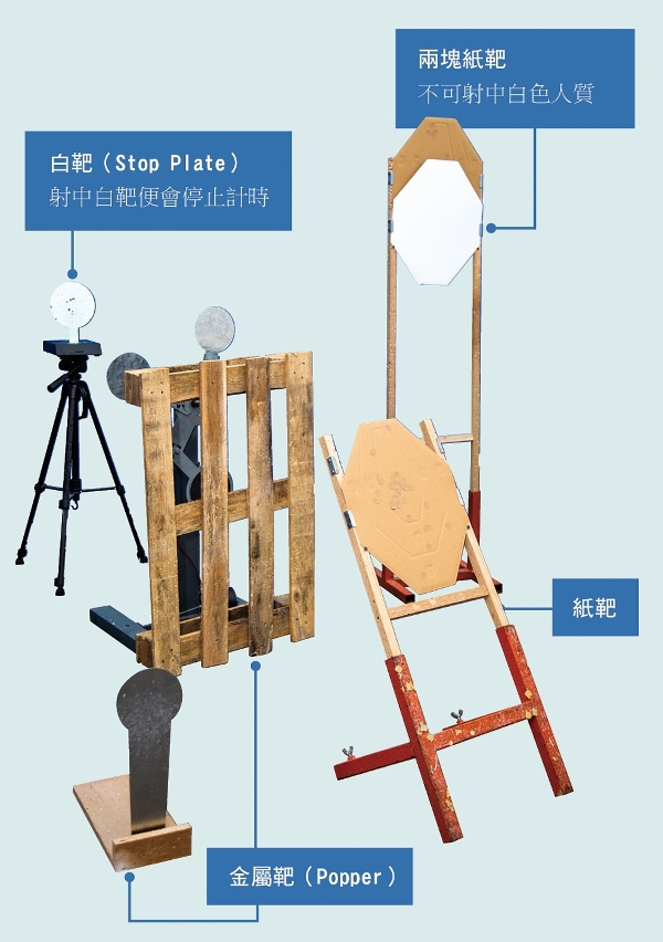 射击目标主要分为金属靶和纸靶,纸靶则分为Alpha、Charlie、Delta三个区域,最后一枪射中完结计时标靶就可以得出时间,用分数除以时间得出的射击因数最高者为冠军。要在短时间分出胜负,拔枪的速度、身体反应和手脚协调都是胜负的关键。在实用射击运动上,有「港澳一家亲」说法(即澳门沿用香港的规则),有标准的分级系统:C-class、B-class、A-class、M-class、GM-class,两地运动员一同计算射手排行榜。