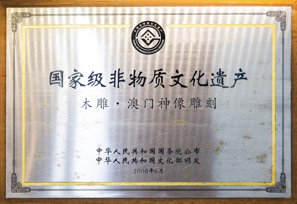 2008年,「木雕.澳门神像雕刻」获正式列入「国家级非物质文化遗产名录」,也是澳门首次独立申报的项目入选国家级非物质文化遗产,让这项百年工艺得以呈现于大众眼前。