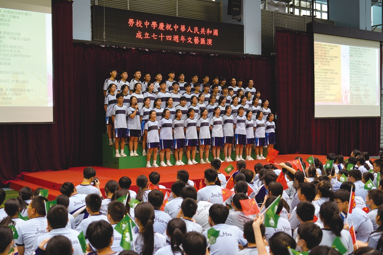 爱国教育可深入浅出,也可与校园文化实践活动结合起来。林伦伟表示,除了在学科上灌输爱国理念,如何通过层层递进、以生动的方式呈现,让爱国变成一件有趣的事,这一点尤为重要。他介绍,爱国教育可细分为政治、军事、经济、文化等层面,其中的「文化自信」,是推行爱国教育最多元的手段,可通过传承和吸纳中华文化精粹进行宣传。为此,学校定期创设不同主题庆祝活动,向学生灌输、推广和渗入爱国情怀,鼓励他们积极关心国家、热爱国家、融入国家。「例如劳校把10月定为『爱国月』,组织师生共同庆祝国家生日,活动形式多样,包括文艺表演、周会分享、壁报比赛和摊位游戏等,以文化作为一种表现载体,去吸纳、体现中国文化精粹,切实做好习近平主席提到的『文化自信』。」
