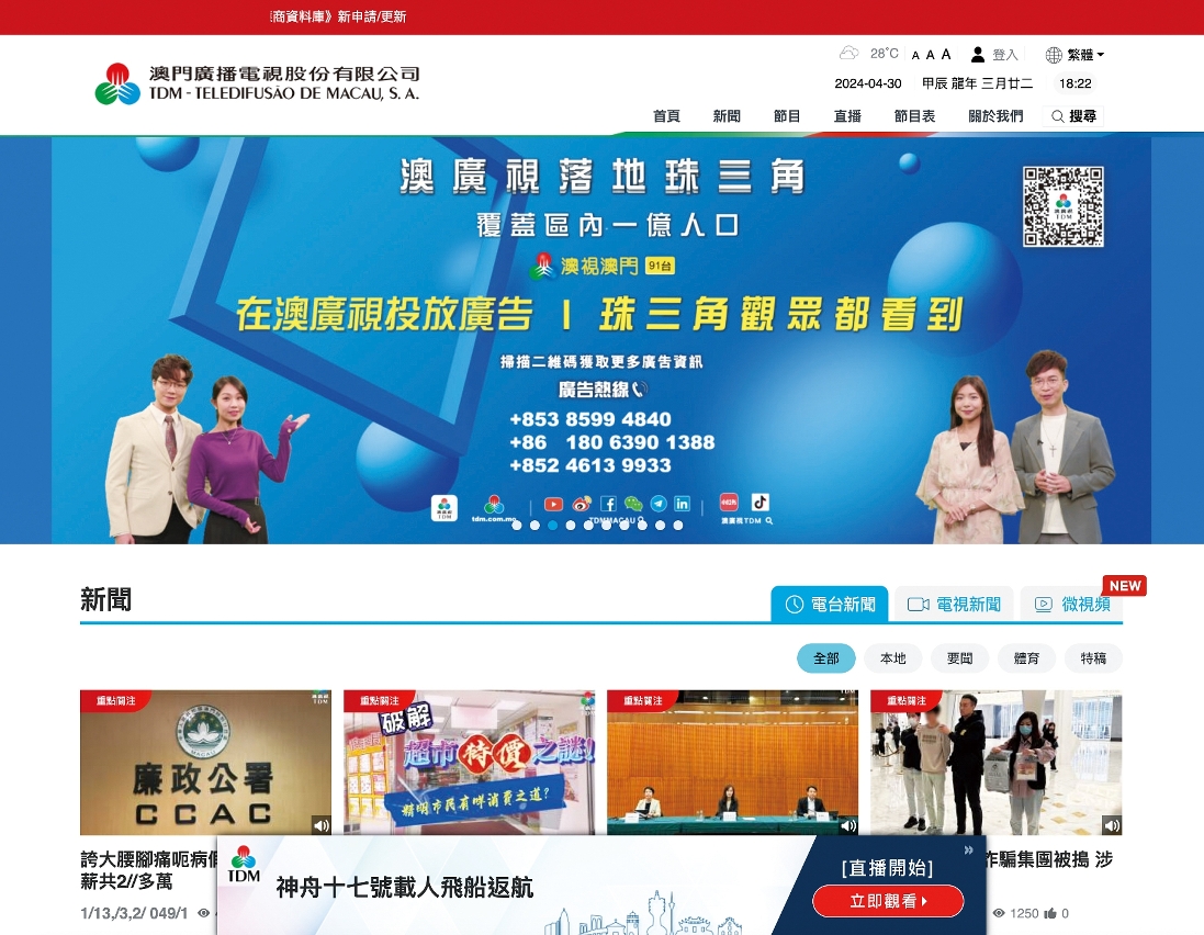 而随着「澳视澳门」落地珠三角,内地的观众看到了澳门报道的风采,瞭解到澳门的角度、澳门的视野。今年3月1日零时,深合区分线管理封关运行正式实施,澳广视中文新闻及资讯节目部派出精兵强将,从前期系列报道,到当日现场全景式、体验式采访,并第一次启用横琴记者站直播间与总部进行连线报道,相关新闻在电视、电台、新媒体平台以及葡文频道等同时推出,引爆全网流量。这次全媒体式的报道,从策划到采编、播出,准确、全面地反映了深合区封关运行的重点工作与利好,获得观众与各方面的高度赞赏。