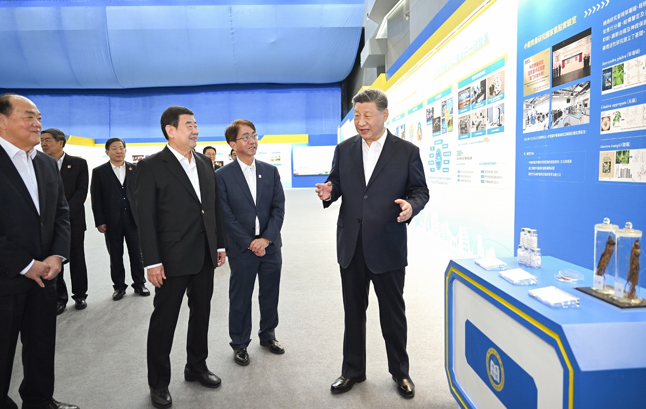 习近平听取粤澳共建中医药高端科技支撑平台的情况介绍,对他们整合多学科先进技术,助力中医药走向世界的做法表示肯定。