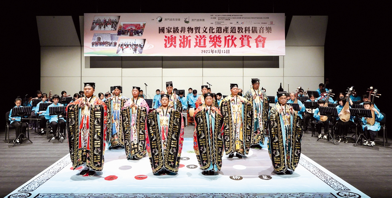 道教科仪音乐是道教法事仪式中运用的音乐,包括独唱、散板式吟唱、鼓乐、吹打与合奏等多种形式,与仪式、唱颂、舞步等互相配合,构成中华民族音乐的重要组成部份,具有浓郁的地方色彩。2009年,澳门道教科仪音乐被列入澳门非物质文化遗产;2011年5月,更入选国家级非物质文化遗产。作为国家级非遗代表性传承人,吴炳鋕承袭家族第四代传人使命,积极宣传推广,除整理乐谱、出版书籍、创办道乐团培养青年人才,还在保留传统精髓的基础上推陈出新,让澳门本土音乐文化绽放新光彩。