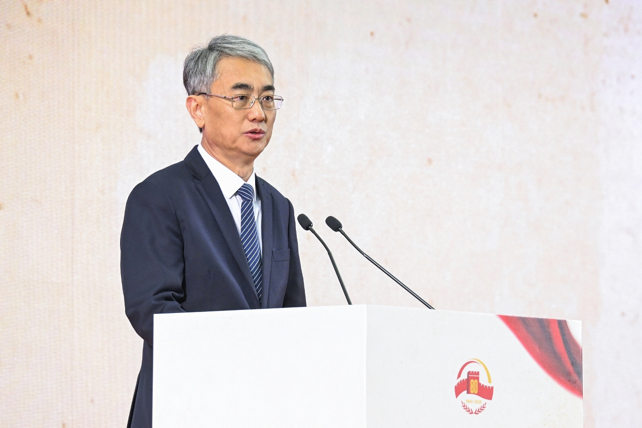 张永春致辞时首先代表特区政府向在抗日战争中英勇牺牲的先烈致以最崇高的敬意,向在战争中不幸遇难的同胞寄予最深切的哀思。他表示,80年前,中国人民通过14年浴血奋战,取得抗日战争的伟大胜利,这是中华民族从屈辱走向复兴的历史转折点,彰显了中华儿女在危难时刻的无比勇气和民族精神,更为中国重新确立世界大国地位筑牢了根基。
