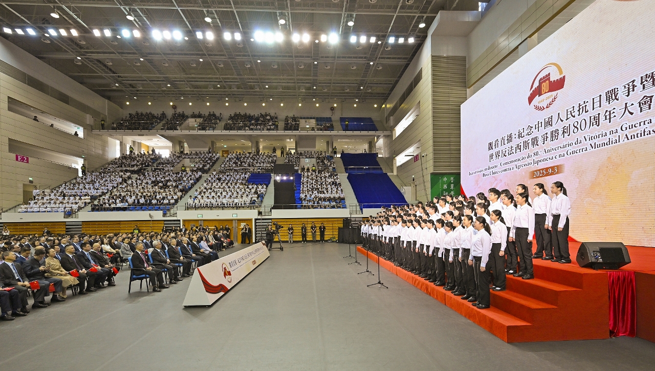 澳门特区政府同步举行「观看直播:纪念中国人民抗日战争暨世界反法西斯战争胜利80周年大会」,号召社会各界,一同聆听习近平主席的重要讲话,以及观看隆重的阅兵仪式,藉此与祖国人民一起铭记历史、缅怀先烈、珍爱和平、开创未来。