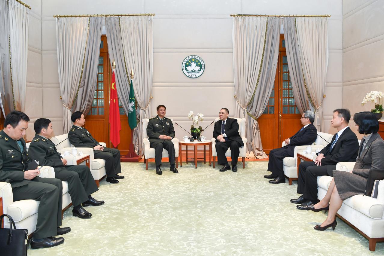 行政长官在会面中祝愿廖正荣少将工作顺利,并感谢原司令员王文一直支持澳门特别行政区政府工作及关心澳门市民,特区政府将一如既往地与驻澳部队保持紧密联系和良好的关系。行政长官指出,澳门特区成立十八年来,驻澳部队一直严格按照《澳门基本法》和《驻军法》履行防务责任,是澳门繁荣稳定和居民安居乐业的坚强后盾。